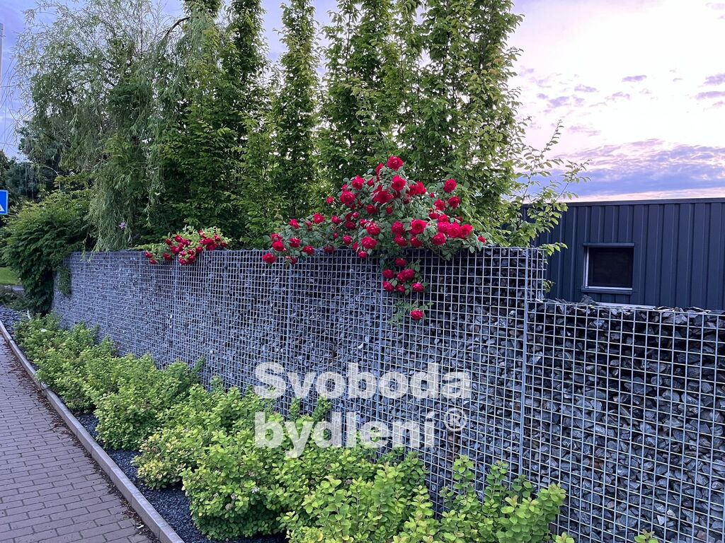 Zahrada je oplocená, ze strany od ulice je plot gabionový. U vstupní branky je domácí videotelefon s minikamerou, v domě je pak jednotka s barevnou obrazovkou. Vjezdová brána je s pohonem na dálkové ovládání. Parkování je možné na pozemku pod zastřešeným parkovacím stáním. Vedle vjezdu je drobná stavba pro zahradní nářadí a techniku, například slouží jako úschova pro robotickou sekačku trávy, která zůstává, a k umístění ovládání automatické závlahy.