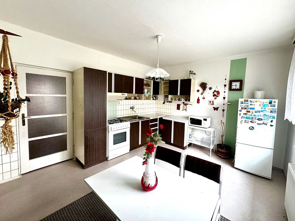Dům je zděný, kompletně podsklepený (včetně garáže), s užitnou plochou cca 130 m². Obytná část zahrnuje čtyři pokoje, kuchyň, koupelnu a další prostory pro pohodlné bydlení. Sklepní prostory o ploše cca 160 m² poskytují dostatek místa pro dílnu, sklad i další využití.