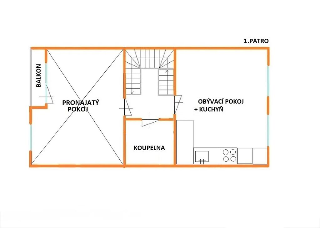 Výměra pokoje k pronájmu je cca 14m2,je umístěn ve 2.patře a je vhodný pro 1 nájemce.