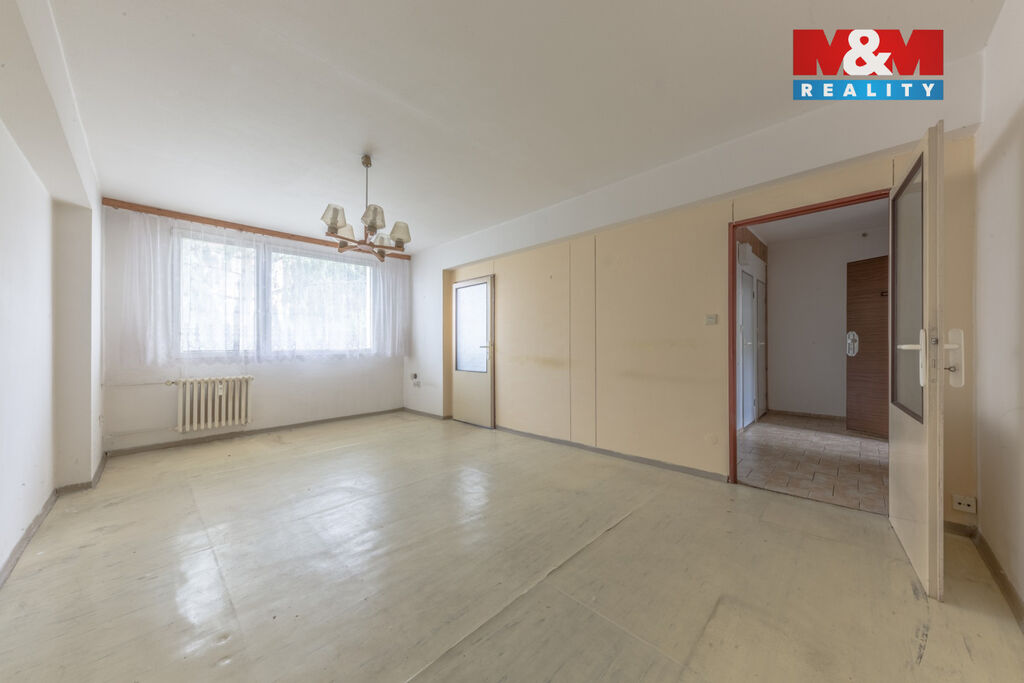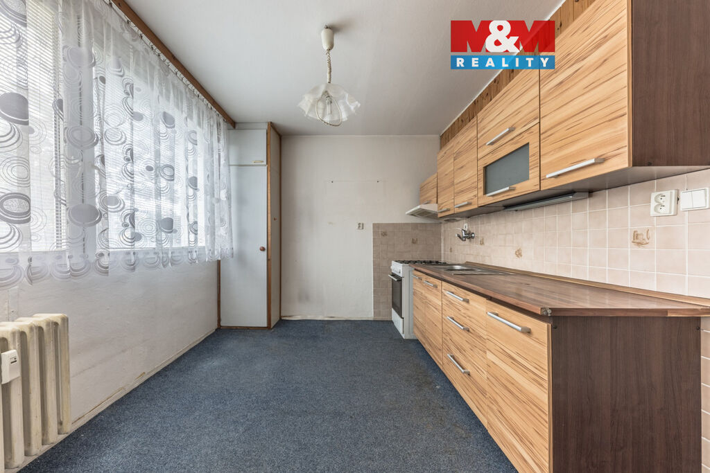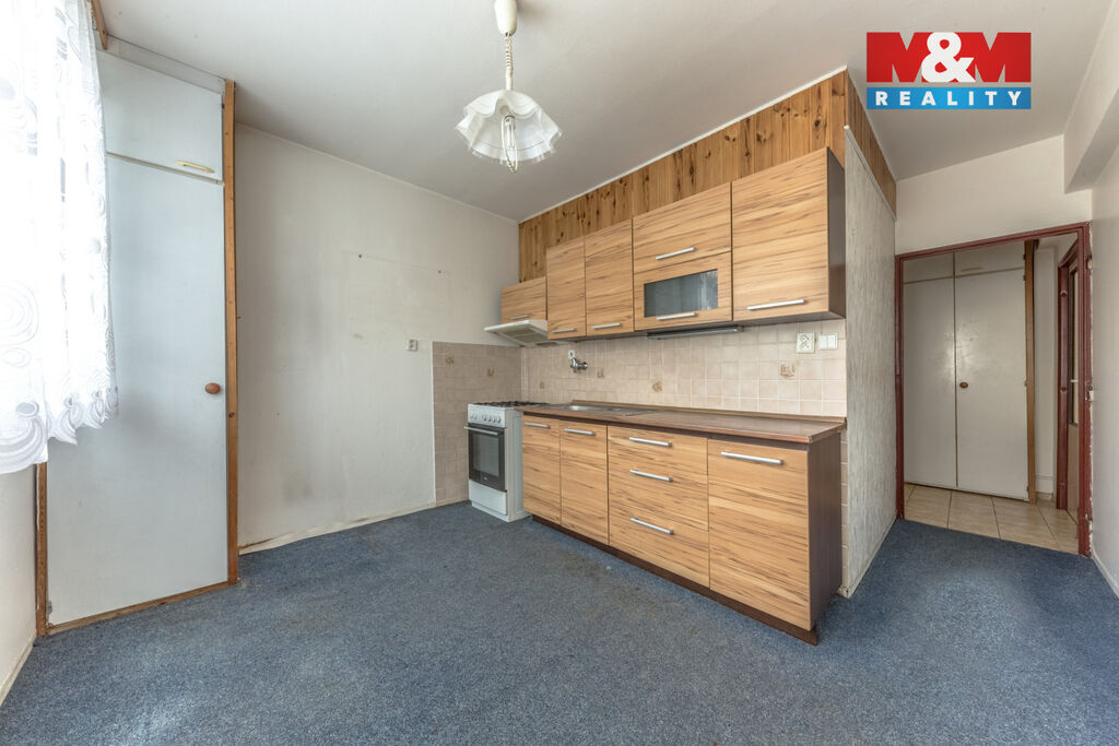 Vlastní byt se skládá ze dvou místností, prostorné kuchyně s jídelnou a obytného pokoje. Výhled z obou pokojů je do zeleně směrem na jih. Vstupní chodba je dost velká, vejde se do ní skříň i botník. K bytu patří sklepní kóje a velkou výhodou je lodžie pouze pro tento byt. Ta je umístěná v mezipatře. Byt je vyklizený v původním stavu, bez zařízení, připravený na rekonstrukci podle vašich představ.