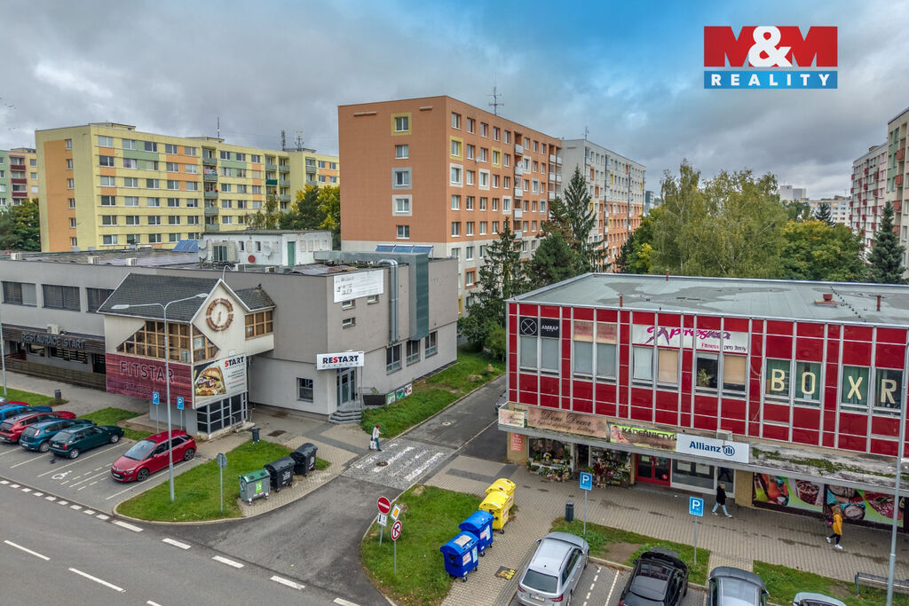 Byt se nachází ve 3. patře panelového domu s výtahem. Nalevo od domu je velký park a napravo od vchodu do domu je ulice s obchody a službami. Jedná se o klidnou lokalitu se slušnými sousedy.