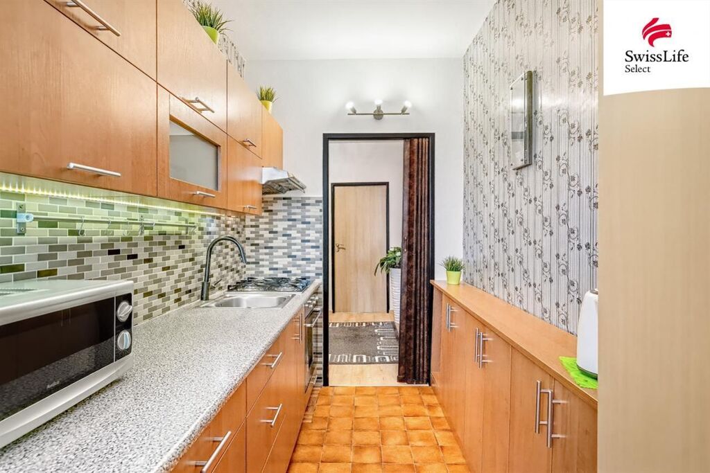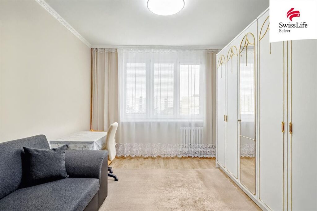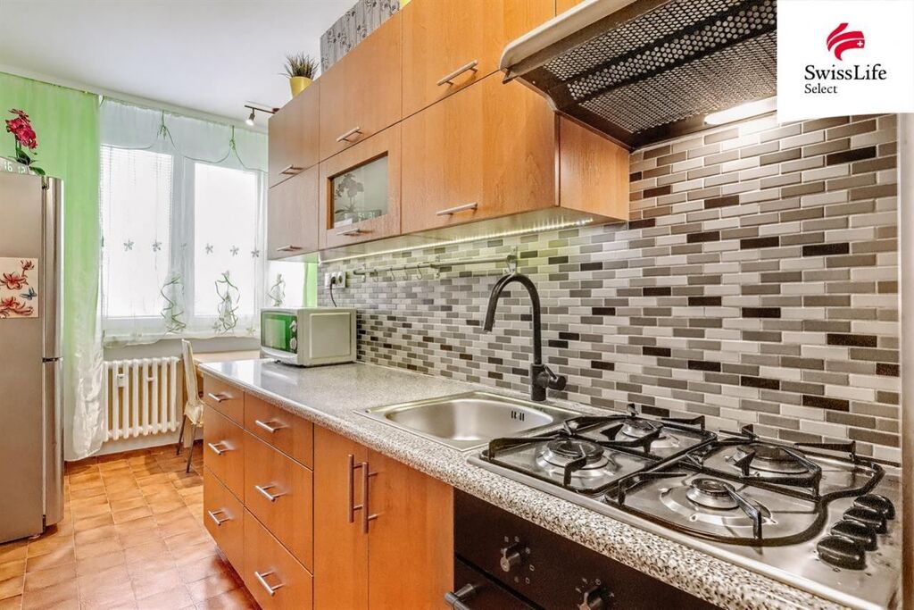 Dispozičně je byt rozdělen na prostornou předsíň s úložným prostorem, dva neprůchozí pokoje, kuchyni s místem na jídelní stůl, koupelnu ( s vanou, připojením na pračku, umyvadlem ) a samostatnou toaletu. Kuchyňská linka je vybavena plynovou varnou deskou, elektrickou troubou, digestoří a dřezem se stojánkovou baterií. Stěny ložnice jsou odhlučněné. Z okna obývacího pokoje je hezký výhled. Celkově byt působí útulným dojmem. Součástí nabídky je sklepní koje v suterénu domu.