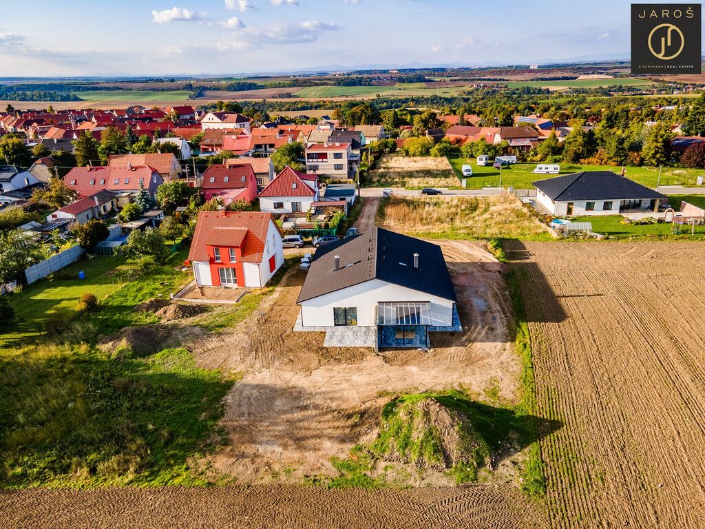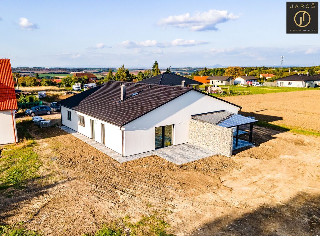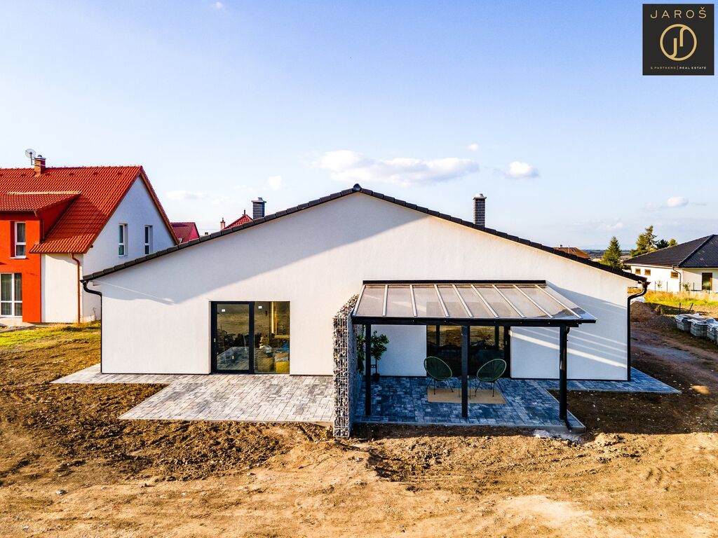 Prodej moderní novostavby bungalovu 4+kk o užitné ploše 126 m² na pozemku o velikosti 517 m² v klidné obci Pchery, okres Kladno.