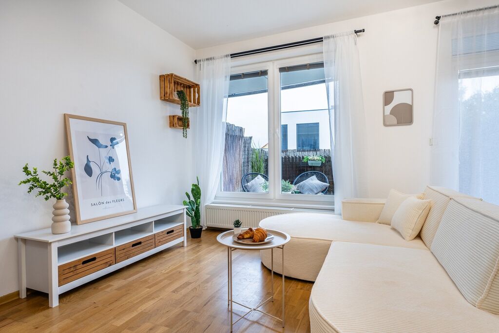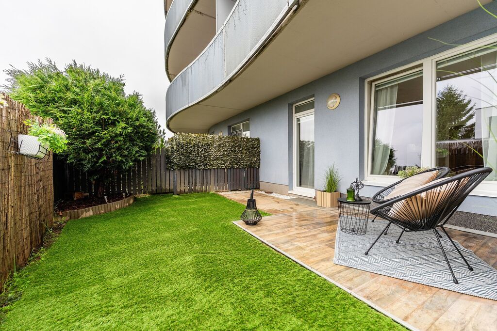 Hlavní předností bytu je soukromá zahrádka, ideální pro odpočinek, grilování nebo posezení s přáteli.
