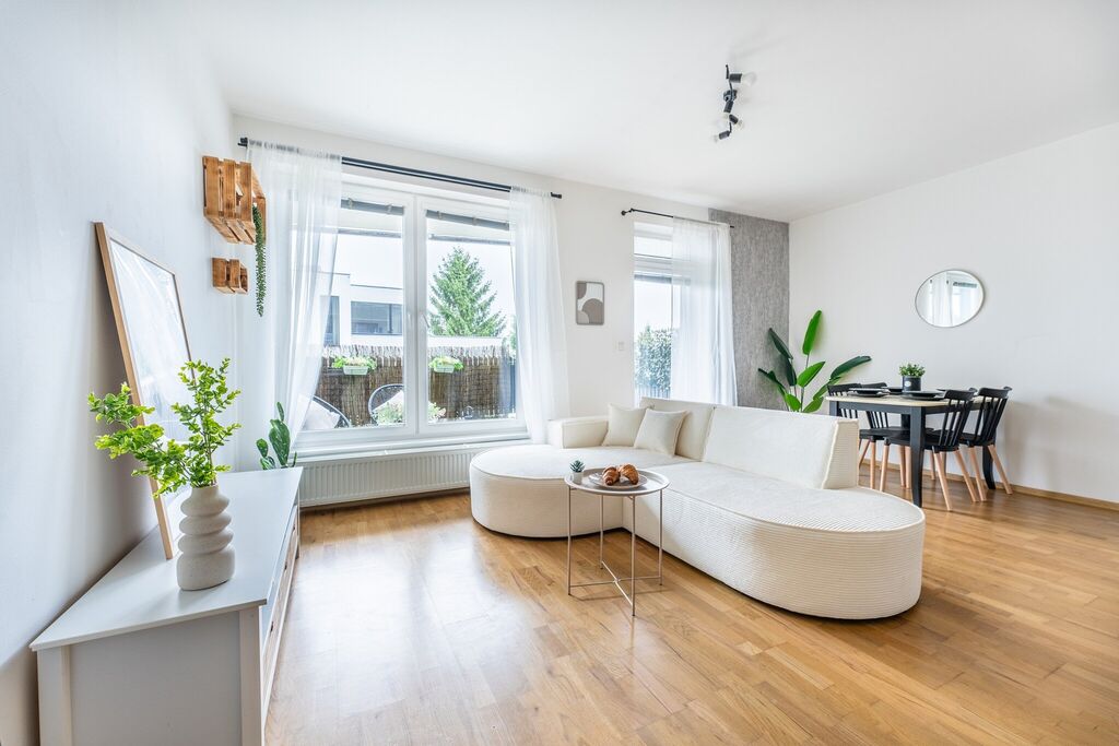 Prodej moderního bytu 1+kk se zahrádkou a parkovacím stáním – Michalovice, Mladá Boleslav