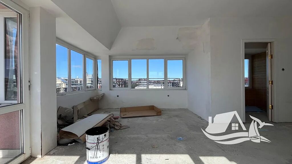 Byt o dispozici 6+kk a ploše 200 m² se nachází v 6. patře moderního domu v malebném přímořském letovisku Pomorie. Interiér nabízí šest pokojů, koupelnu s toaletou a prostornou terasu, která láká k posezení při ranní kávě nebo večerním víně s výhledem na město a obzor.