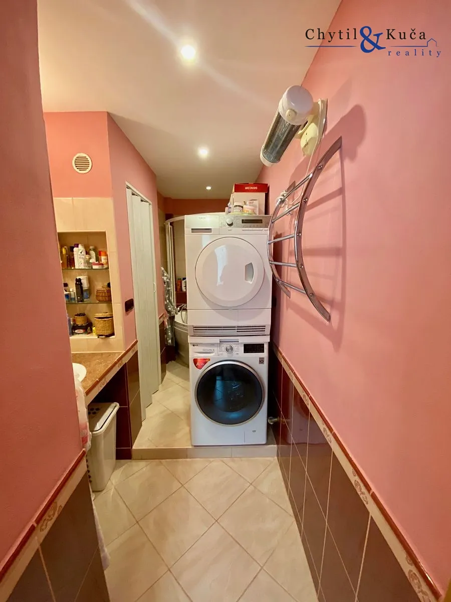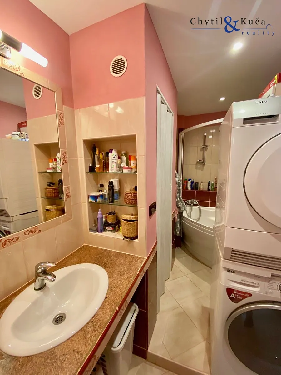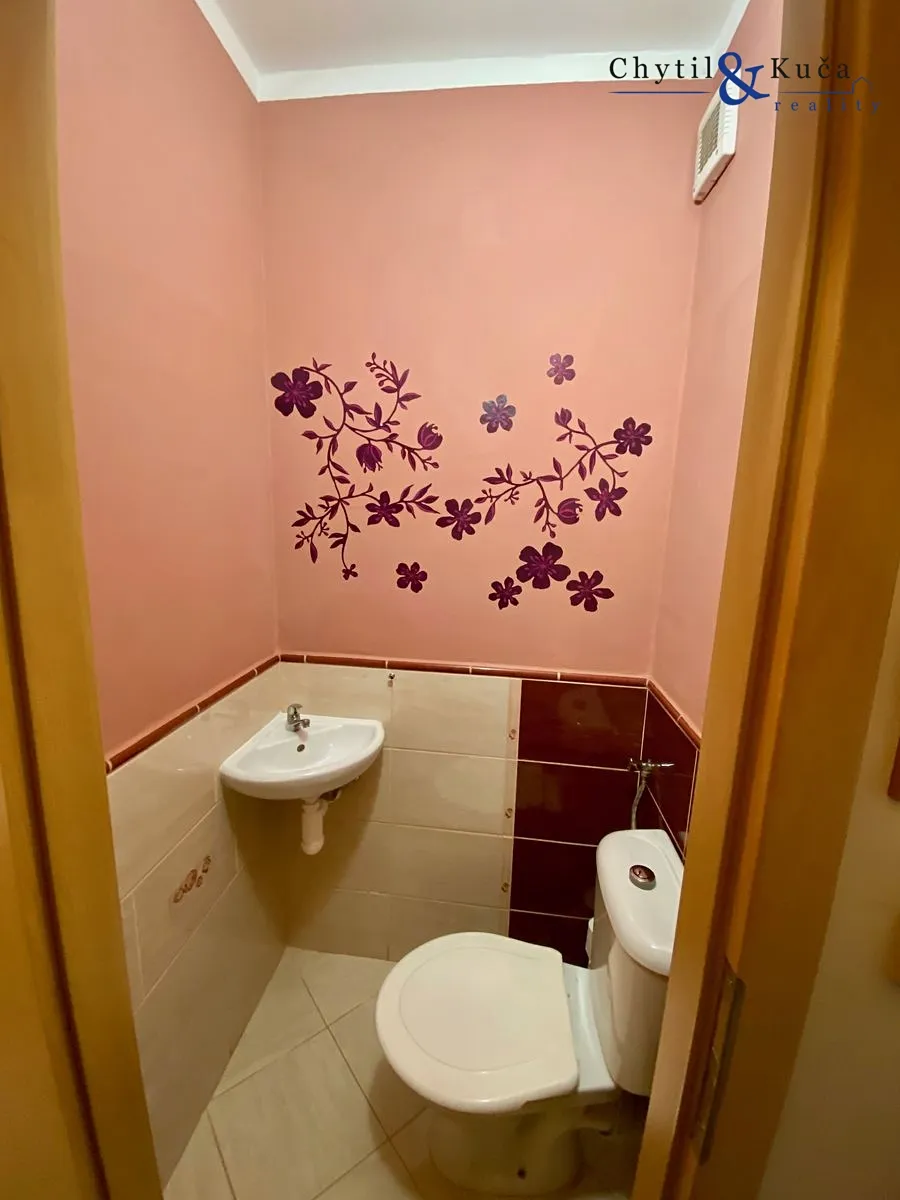 Byt se nachází ve vyvýšeném přízemí a podlahová plocha činí 52 m2. V tomto bytě se nachází chodba, dva pokoje, kuchyně, koupelna a samostatné wc. Byt prošel cca před 12ti lety rekonstrukcí a má zděné jádro. Ikdyž je byt dispozičně vedený jako 2+1, tak obývací pokoj je prakticky vyřešen i jako ložnice a to postelí spuštěnou ze stropu pomocí konstrukce a uzpůsoben tak, aby zde mohla bydlet popř. i 4-členná rodina (doposud ze strany majitelů tak bylo). Součástí bytu je prostorná lodžie a sklepní kóje.