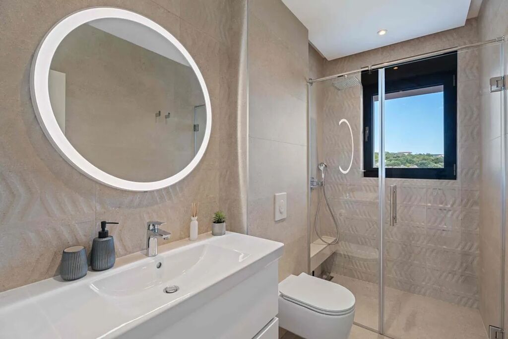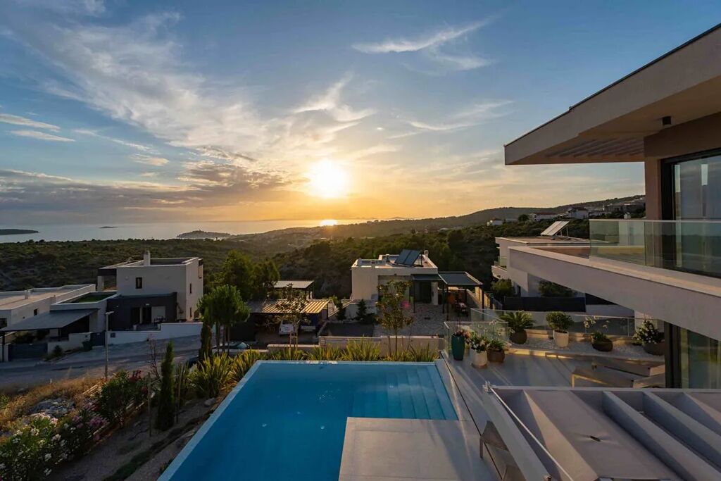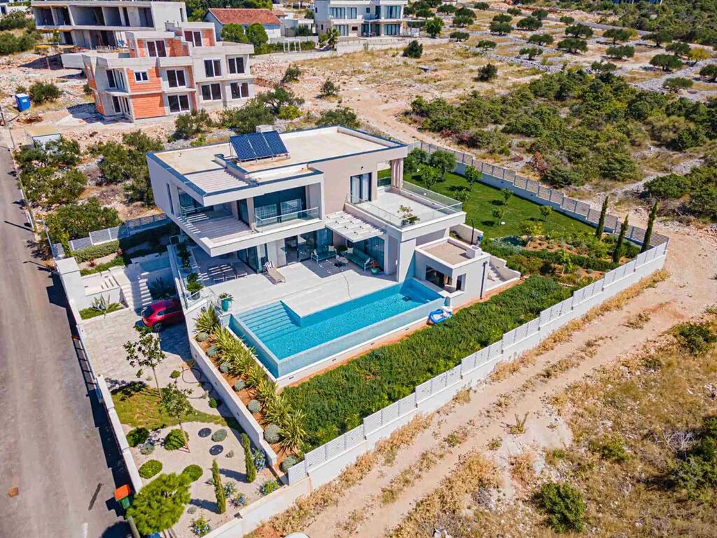 Tato vila, postavená v roce 2021, se nachází v Primoštenu a je ztělesněním moderní elegance a sofistikovanosti. Nabízí 4/5 ložnice a 5 koupelen, všechny navrženy s mimořádným důrazem na detail. Další pokoj, který v současnosti slouží jako tělocvična s vlastní koupelnou, lze v případě potřeby snadno přeměnit na další ložnici. Vila má nekonečný bazén, který nabízí úžasný výhled na půvabné staré město Primošten a je celá zařízena prémiovým italským nábytkem. Venkovní prostor je krásně upravený, přední i zadní zahrada poskytuje klidné prostředí. Dispozice vily zahrnuje více úrovní pro maximální pohodlí a luxus. Garáž pro jedno auto, technická místnost, další dvě parkovací stání v oploceném objektu. V prvním podlaží najdete otevřenou kuchyň a obývací prostor, jednu ložnici s vlastní koupelnou a toaletu pro hosty. Rozlehlá terasa v tomto patře zahrnuje nekonečný bazén ve tvaru L, bar a krb. Ve druhém podlaží jsou čtyři ložnice s vlastní koupelnou a dvě hlavní ložnice s terasami s výhledem na moře a předinstalovanými přípojkami pro jacuzzi. Moderní vybavení zvyšuje komfort a funkčnost vily, včetně elektrické klimatizace v každém pokoji a podlahového vytápění pro zajištění celoročního komfortu. Veřejný vodovod, kanalizace - bio septik. Výměra 300 m.