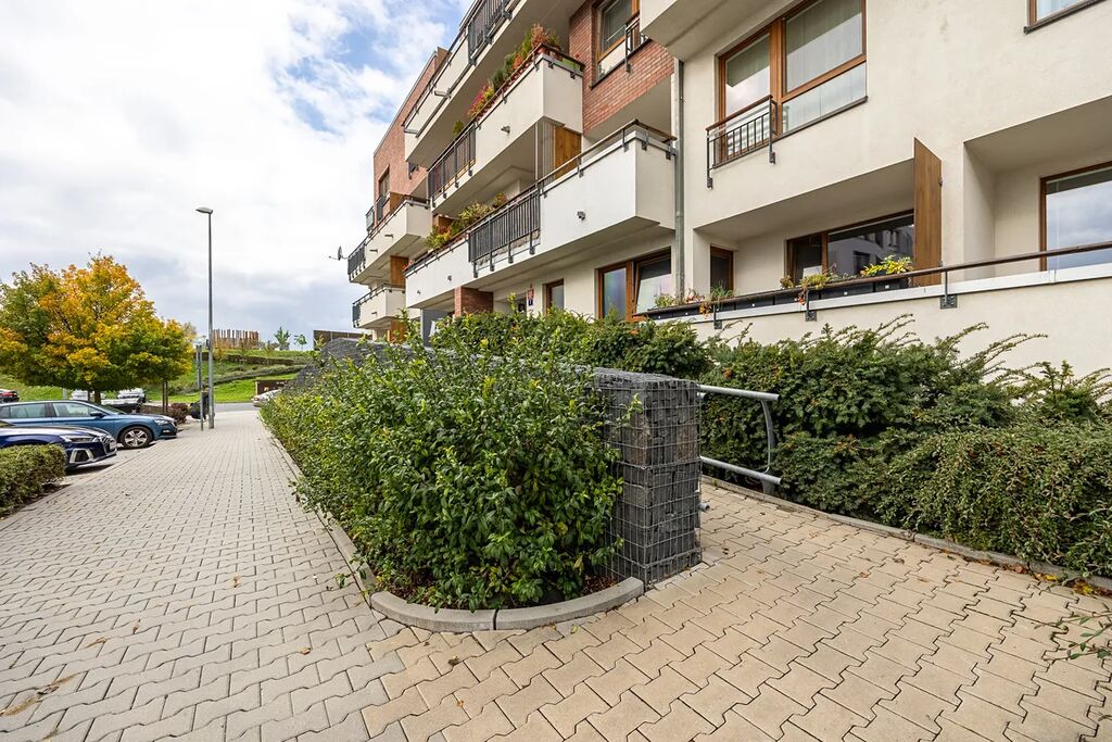 Byt vypadá přesně jak vidíte na fotografiích, nejedná se o vizualizaci. V bytě je krásná kuchyně s ostrůvkem vyrobena na míru a vybavena spotřebiči (el. trouba, myčka, mikrovlnná trouba, indukční deska, digestoř). V koupelně je vana, sprchový kout, příprava na pračku, designové umyvadlo na praktické skříňce se dvěma zásuvkami a navíc podlahové vytápění. Byt je dispozičně velmi dobře řešený se dvěma velkými neprůchozími ložnicemi s krásným výhledem, prostorným obývacím pokojem s kuchyní s předokenními žaluziemi, opravdu prostornou koupelnou a samostatnou toaletou, technickou místností a velkou chodbou s dostatkem místa na vestavěnné stříně. K bytu náleží velký balkon/terasa a větší parkovací stání v podzemní garáži.