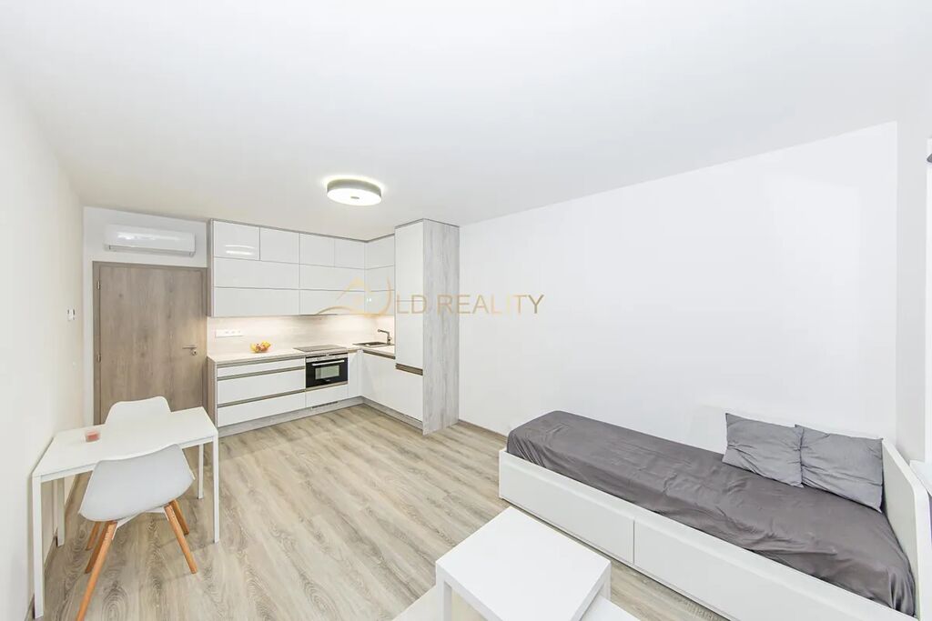 Pronájem bytu o dispozici 1+kk s výměrou 32 m2, který je umístěn v přízemí novostavby bytového domu na ulici Frištenského. K bytu náleží oplocená terasa 9 m2 a venkovní parkovací místo. Byt se pronajímá nezařízený nábytkem, součástí je kuchyňská linka se spotřebiči varná deska, trouba, digestoř, lednice, myčka. Prostorná šatna je vybavena policovými díly na míru. V koupelně se nachází sprchový kout, WC, přípojka na pračku. Byt se nachází ve velmi oblíbené lokalitě s výbornou dostupností do centra. Cena je uvedena bez záloh na služby cca 2 500 Kč + elektřina (800,-Kč), parkovací místo je za poplatek 1 000,-Kč/měs, jistota 20 000,-Kč, provize 1 nájem. Byt je určen pro max. 2 osoby, nekuřáky, bez domácích mazlíčků. Volný od 1.12.