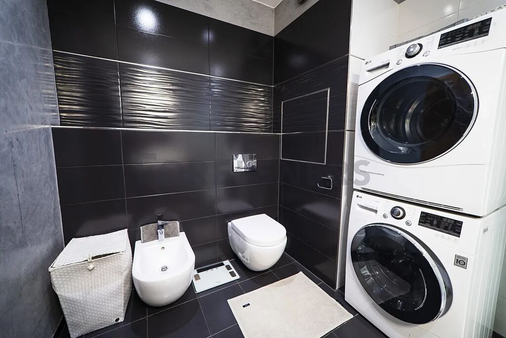 V ceně bytu je kompletní vybavení, které je vidět na fotografiích – včetně spotřebičů, skříní, sedacího nábytku a stolů. Výjimkou je pouze postel v ložnici.