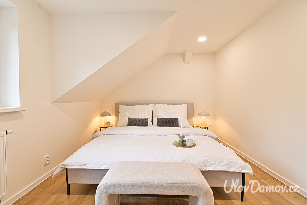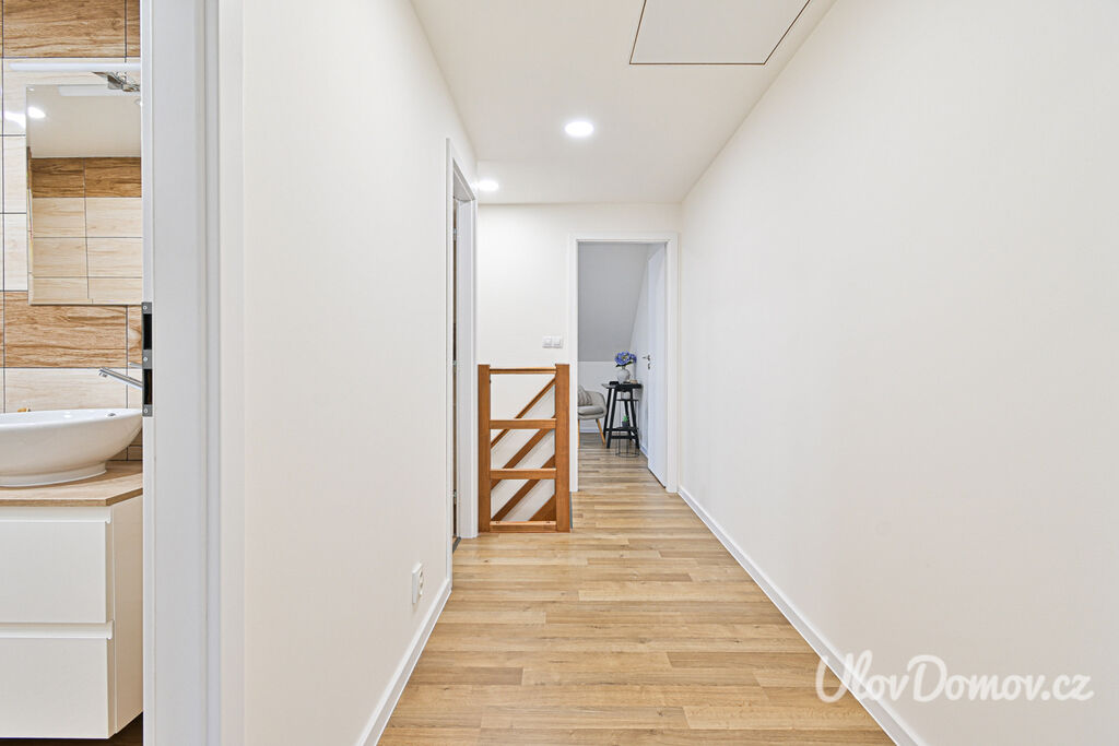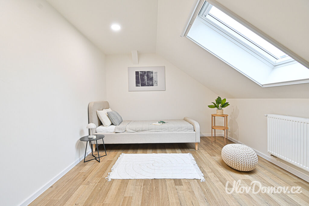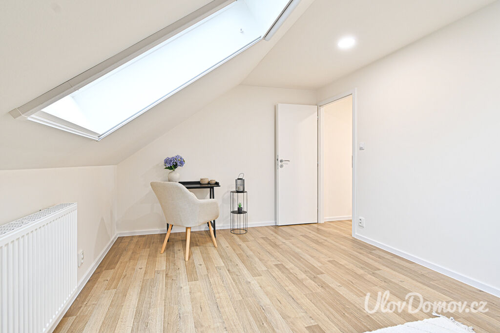 Ve výhradním zastoupení majitele nabízíme ke koupi bytovou jednotku 3+kk o podlahové ploše 85 m2 – polovinu dvojdomu. K bytu dále náleží terasa se zahradou o výměře 115 m², pracovna, kolárna/sklad a úložný prostor v podkroví. Dům, který prošel v roce 2020 kompletní rekonstrukcí, je rozdělen na 2 bytové jednotky. Technický stav odpovídá novostavbě (z původního domu zůstaly jen obvodové konstrukce).