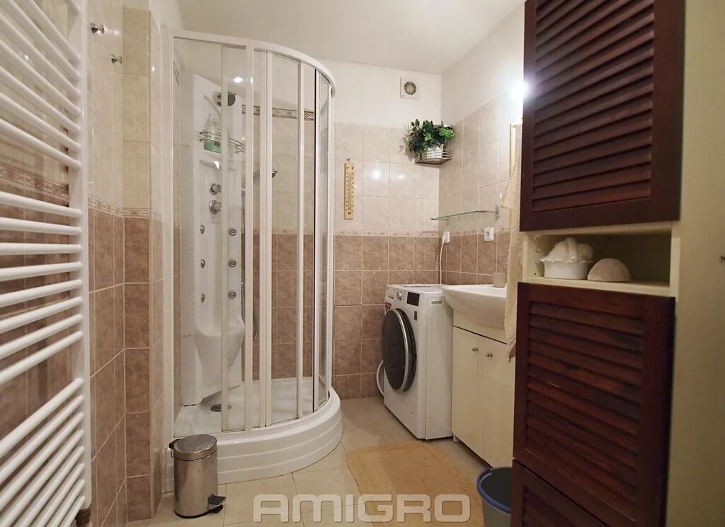 V koupelně je umístěn plynový kotel sloužící k vytápění bytu a ohřevu vody.