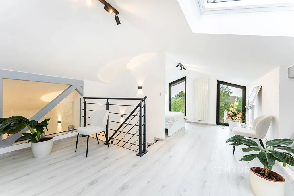 + maximální prosvětlení obytných místností i koupelny denním světlem (velkoformátová okna, skleněné průhledy v interiéru)