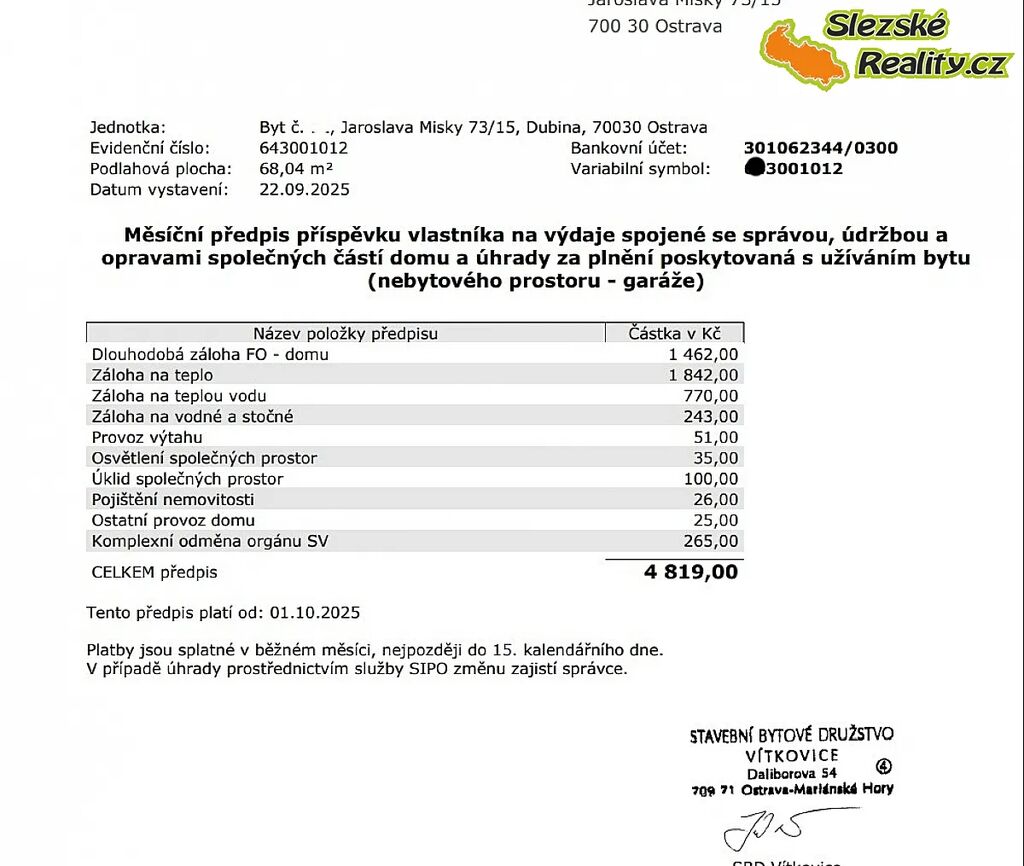 Byt je ideální volbou pro mladou rodinu nebo jako investiční příležitost. Náklady na bydlení jsou velmi zajimavé a činí 4.800,- Kč.