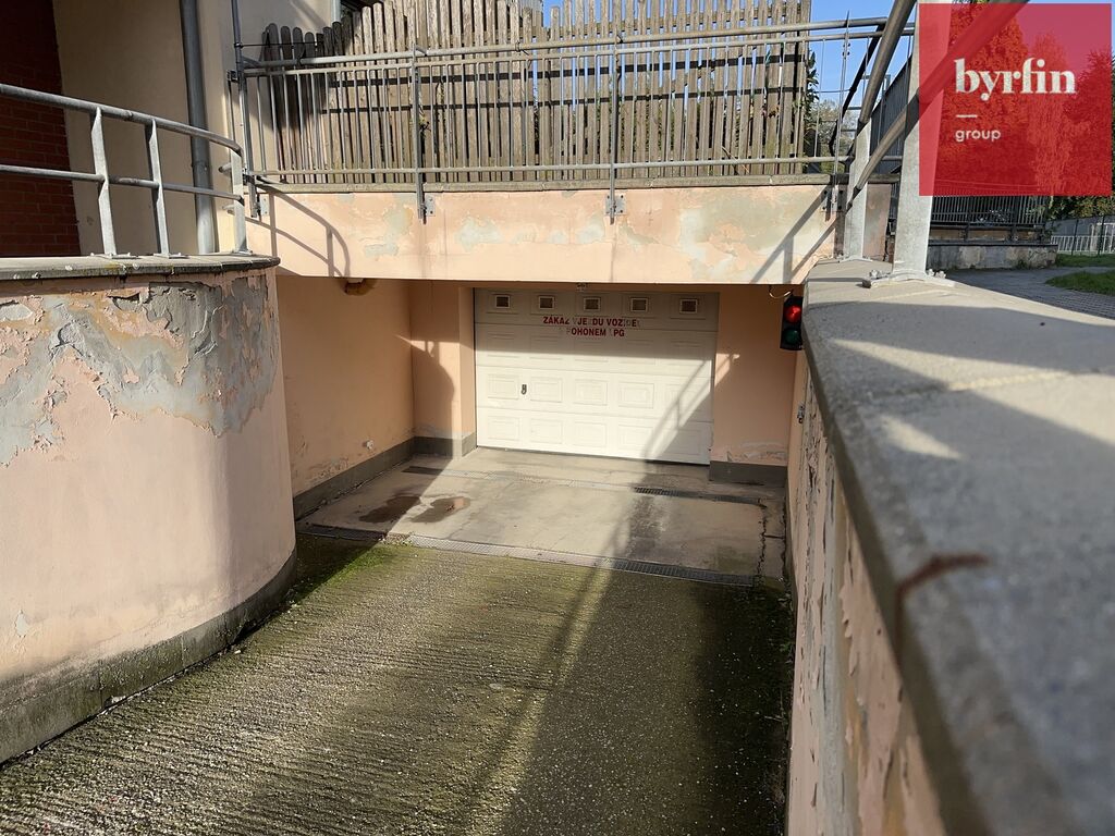 K bytu je možné dokoupit garážové stání v podzemí domu za 350 000 Kč.