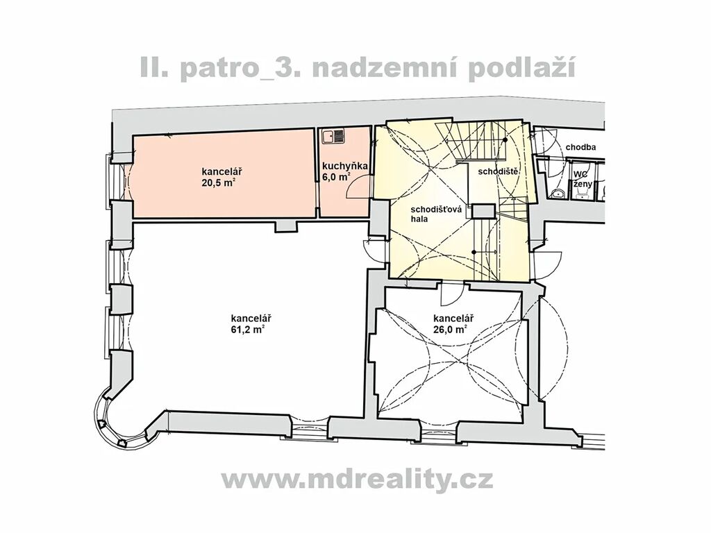 Atraktivní nebytový prostor umístěný ve II. patře historického domu na nároží Masarykova náměstí a Komenského ulice v krajském městě Jihlavě nejfrekventovanější místo v centru. Administrativní budova tvoří uliční frontu společně se sídly České spořitelny a České pošty. V blízkosti a v domě mají sídla další významné úřady a firmy, v bezprostřední blízkosti je veřejné parkoviště. Jedná se o kancelář o výměře 26,5 m2 v zabezpečeném a hlídaném objektu, připraveny jsou rozvody počítačových sítí a telefonu. K dispozici je zcela nové sociální zařízení na přilehlém "mezipatře". K dispozici od 1. ledna 2026, prohlídky kdykoliv po předchozí domluvě. Optický datový kabel v domě!