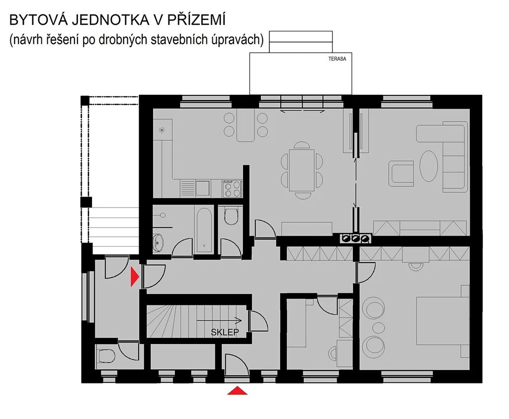 - zbudování terasy s terasovými dveřmi,