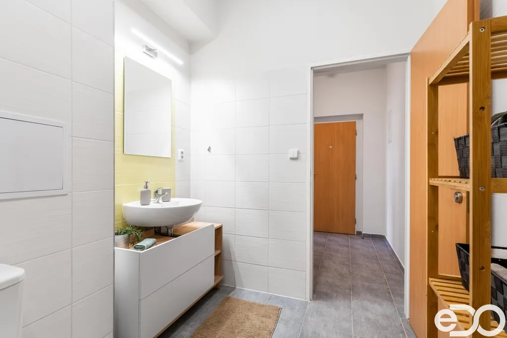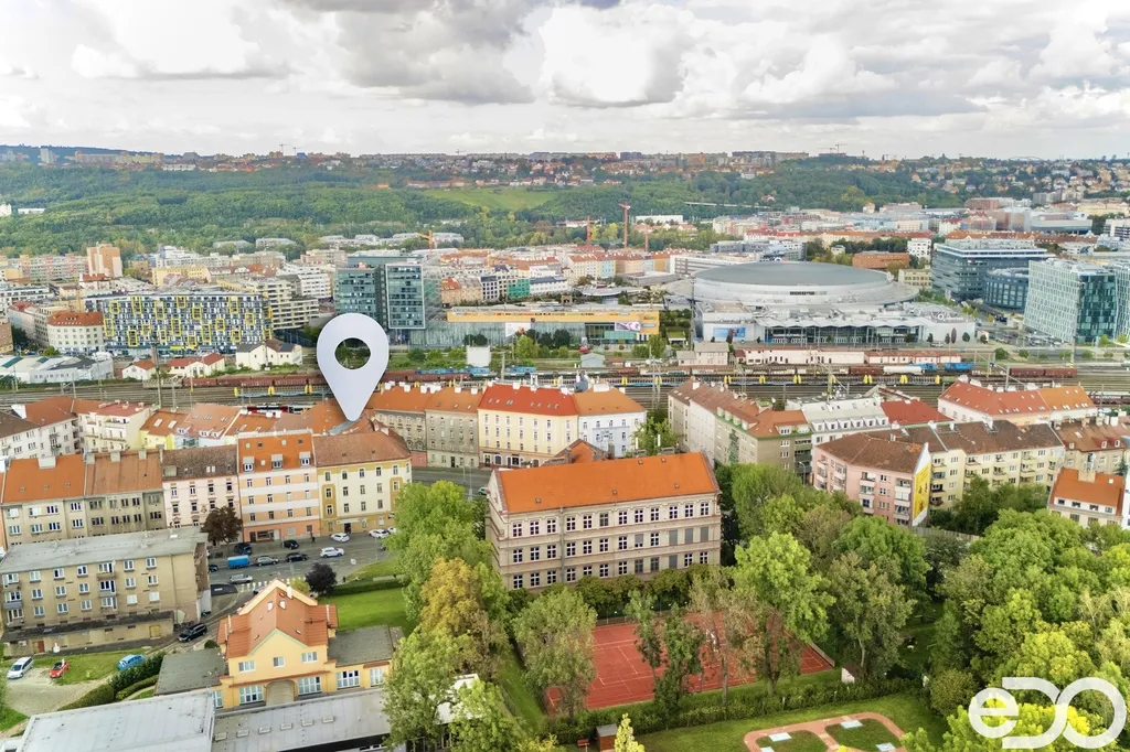 Byt v dobře dostupné části Prahy, kousek od O2 arény — přesně ten typ bytu, po kterém je na trhu největší poptávka. Nachází se ve 3. patře (4. NP) cihlového domu s výtahem. Dům má po rekonstrukci společné prostory a působí velmi udržovaně. Součástí je také klidný vnitroblok přístupný všem obyvatelům, ideální pro chvíle odpočinku mimo ruch ulice.