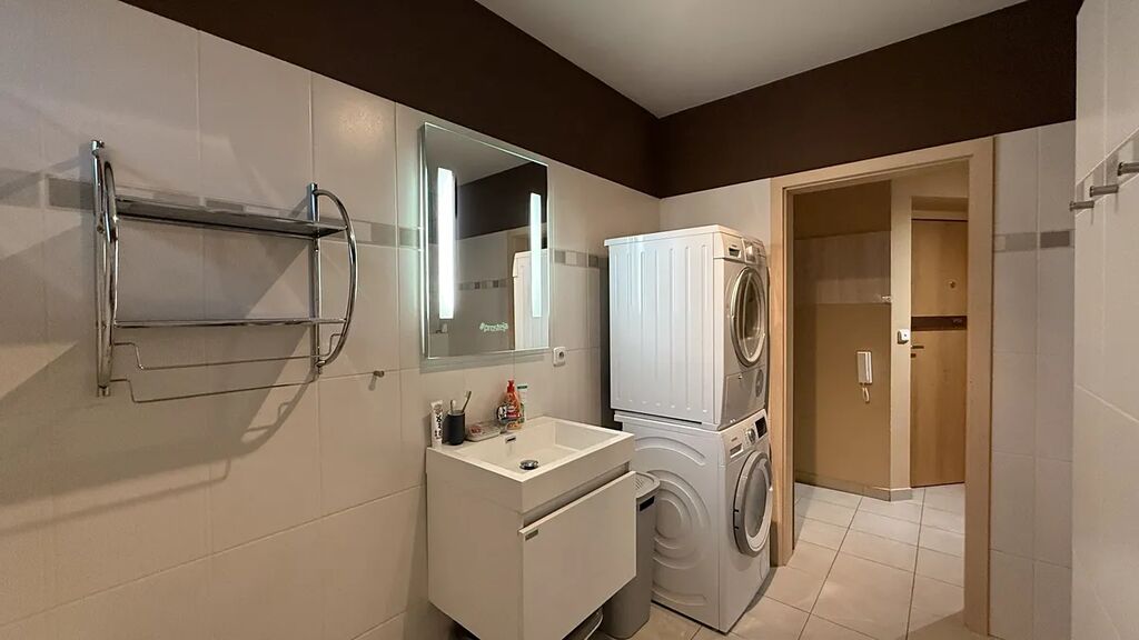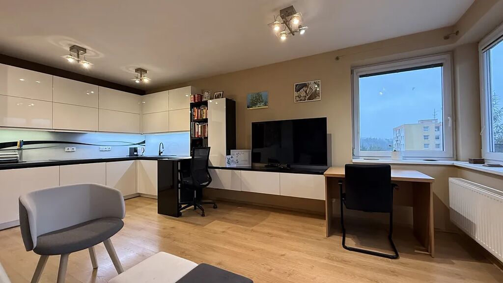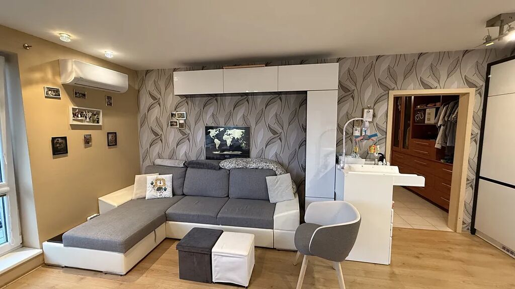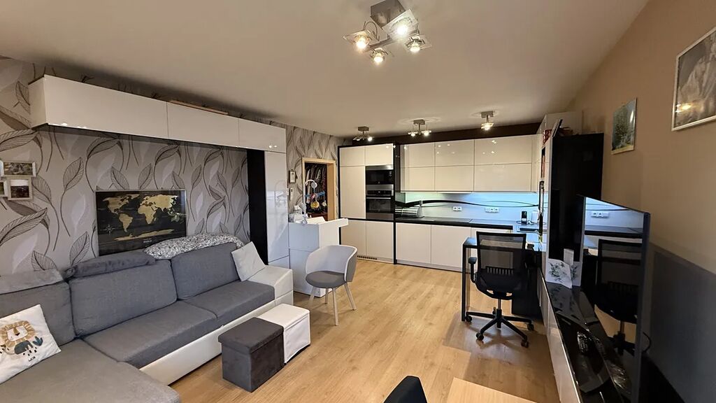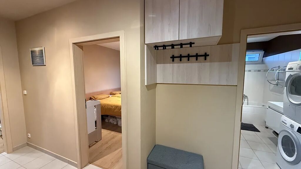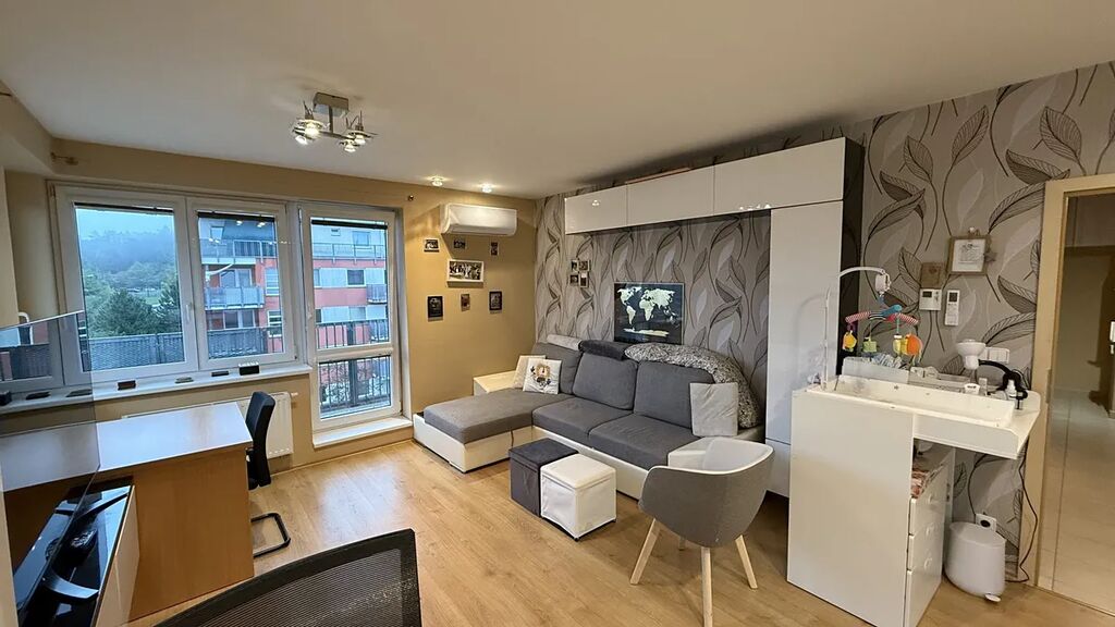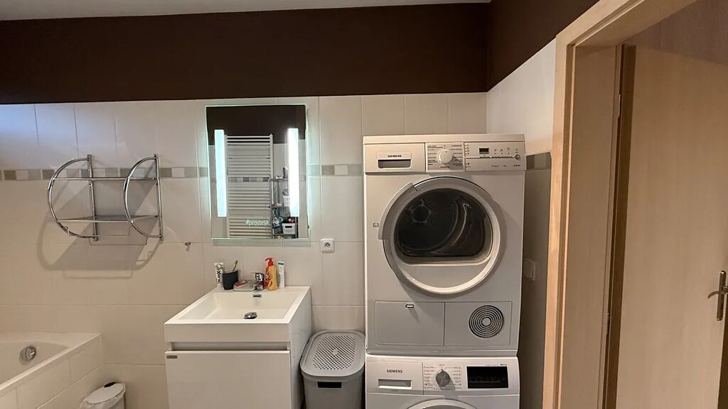 Byt s dispozicí 2+kk, je velmi hezky zařízený. Moderní kuchyně spojená s prostorným obývacím pokojem, má příjemné čisté linie a je vybavena veškerými potřebnými elektrospotřebiči, včetně myčky nádobí, vše od značky Electrolux a dostatkem úložných prostor i pro náročnější kuchařku. Obývací pokoj opatřený klimatizací (2025) je spojen s mobilní aplikací, majitelé tak mají možnost na dálku, při návratu ze zaměstnání nebo dovolené, si dopředu vytvořit tepelný komfort v bytě. V koupelně s vanou a sprchou, je místo na pračku i sušičku prádla, a jako další prvek pro komfortní bydlení je koupelna opatřena i vlastním okénkem.
