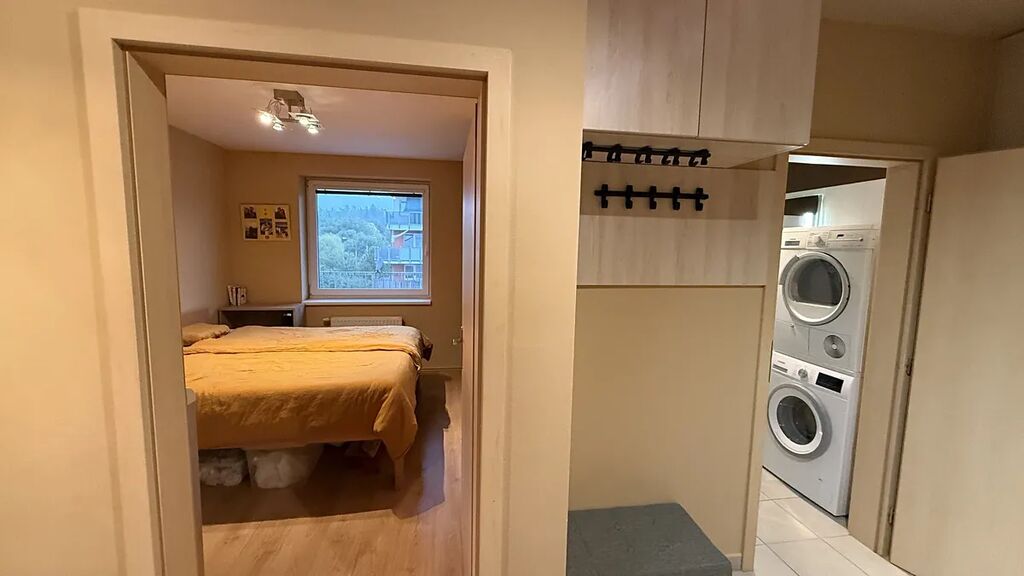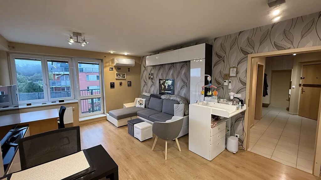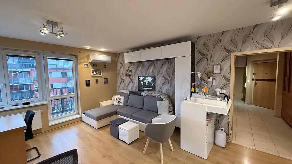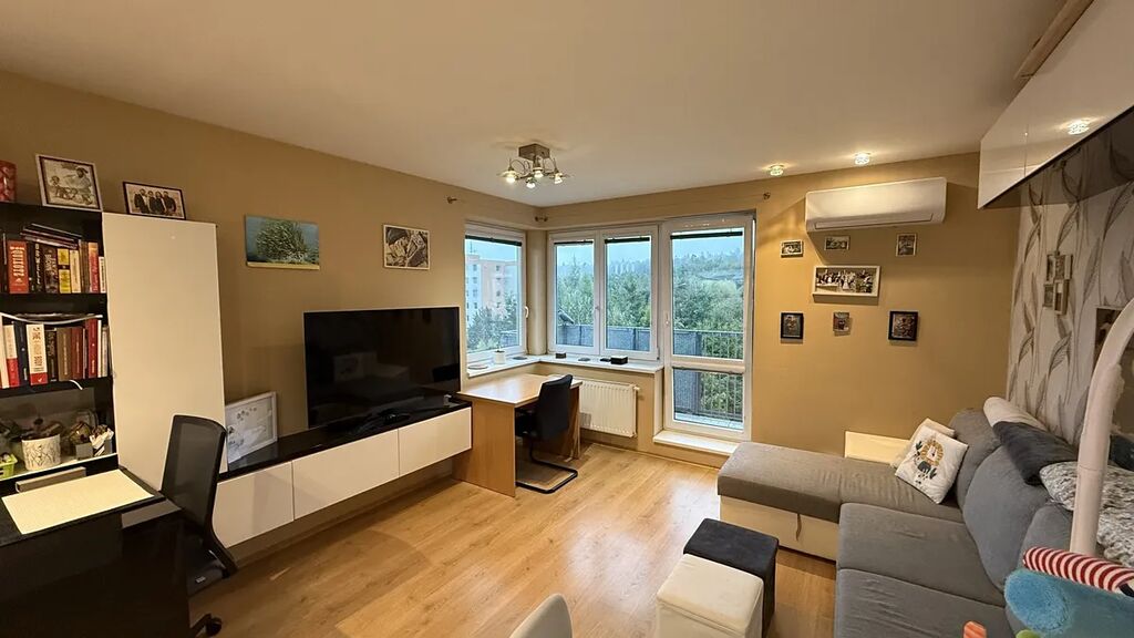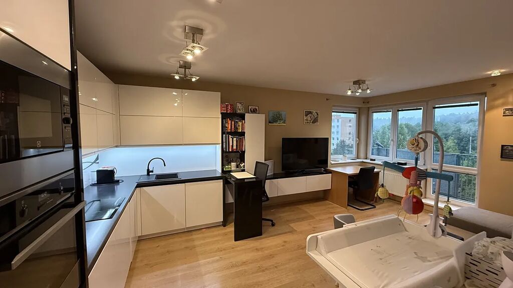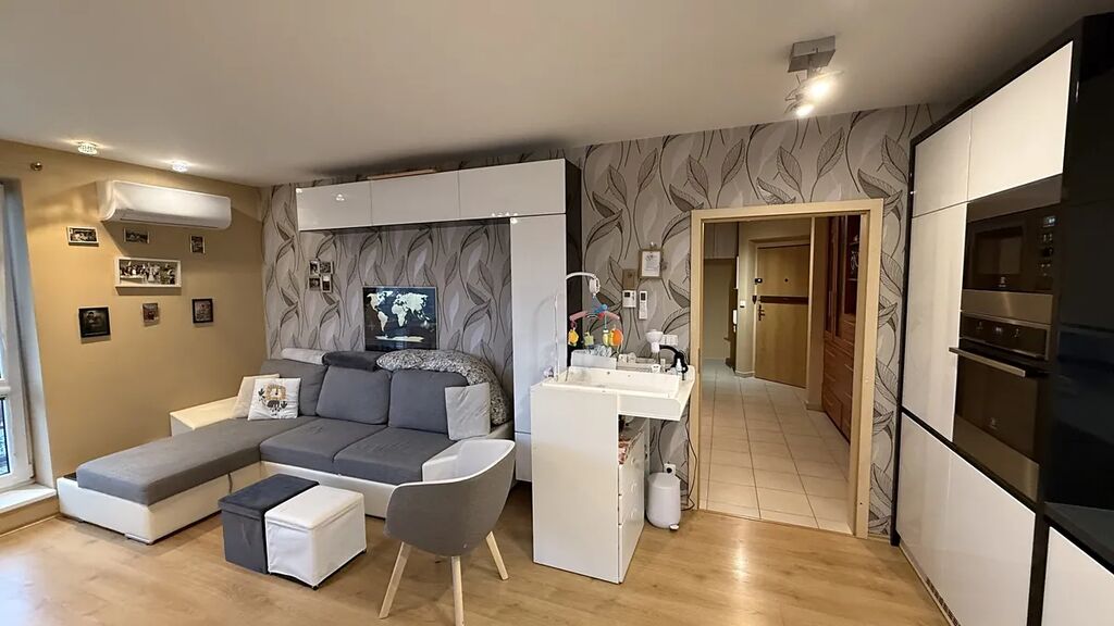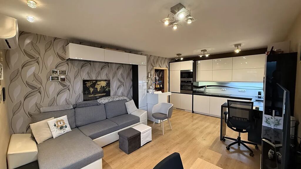 Byt s dispozicí 2+kk, je velmi hezky zařízený. Moderní kuchyně spojená s prostorným obývacím pokojem, má příjemné čisté linie a je vybavena veškerými potřebnými elektrospotřebiči, včetně myčky nádobí, vše od značky Electrolux a dostatkem úložných prostor i pro náročnější kuchařku. Obývací pokoj opatřený klimatizací (2025) je spojen s mobilní aplikací, majitelé tak mají možnost na dálku, při návratu ze zaměstnání nebo dovolené, si dopředu vytvořit tepelný komfort v bytě. V koupelně s vanou a sprchou, je místo na pračku i sušičku prádla, a jako další prvek pro komfortní bydlení je koupelna opatřena i vlastním okénkem.