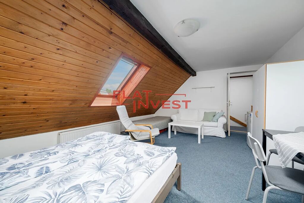 V přízemí nalezneme po vstupu do samostatné chodby obývací pokoj s kuchyní, koupelnu s toaletou a dále jeden samostatný pokoj s východem na zahradu která náleží k tomuto bytu. V patře potom jsou tři samostatné pokoje které v současné době slouží ke krátkodobému pronájmu.