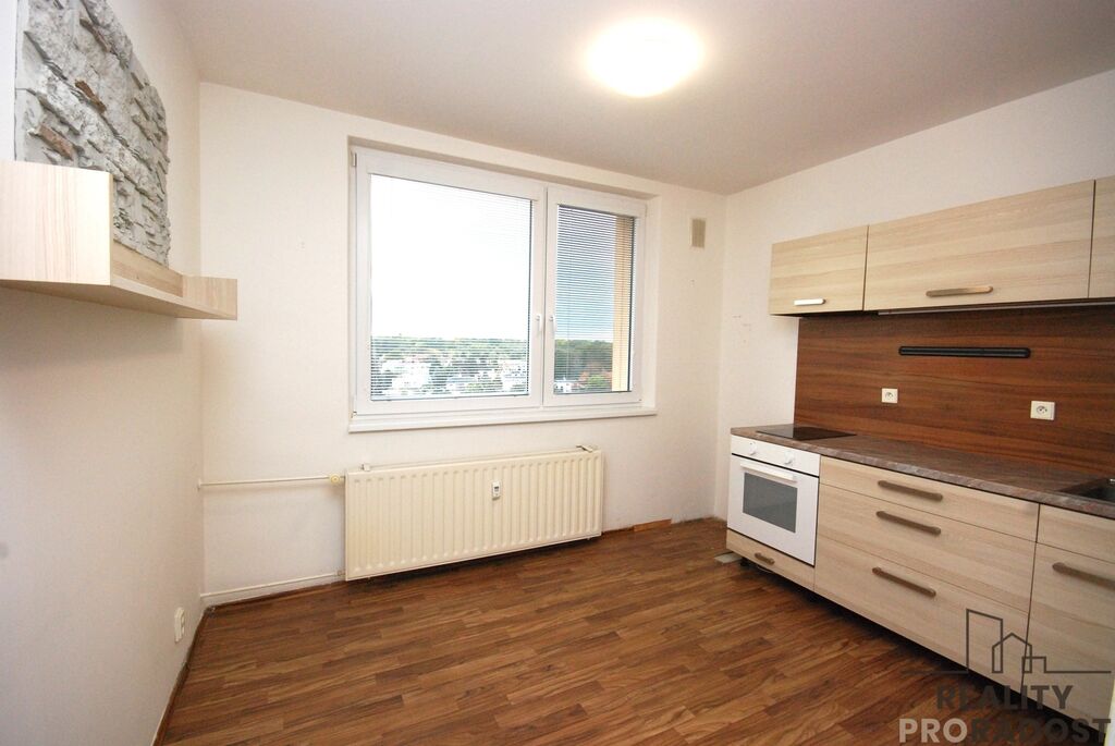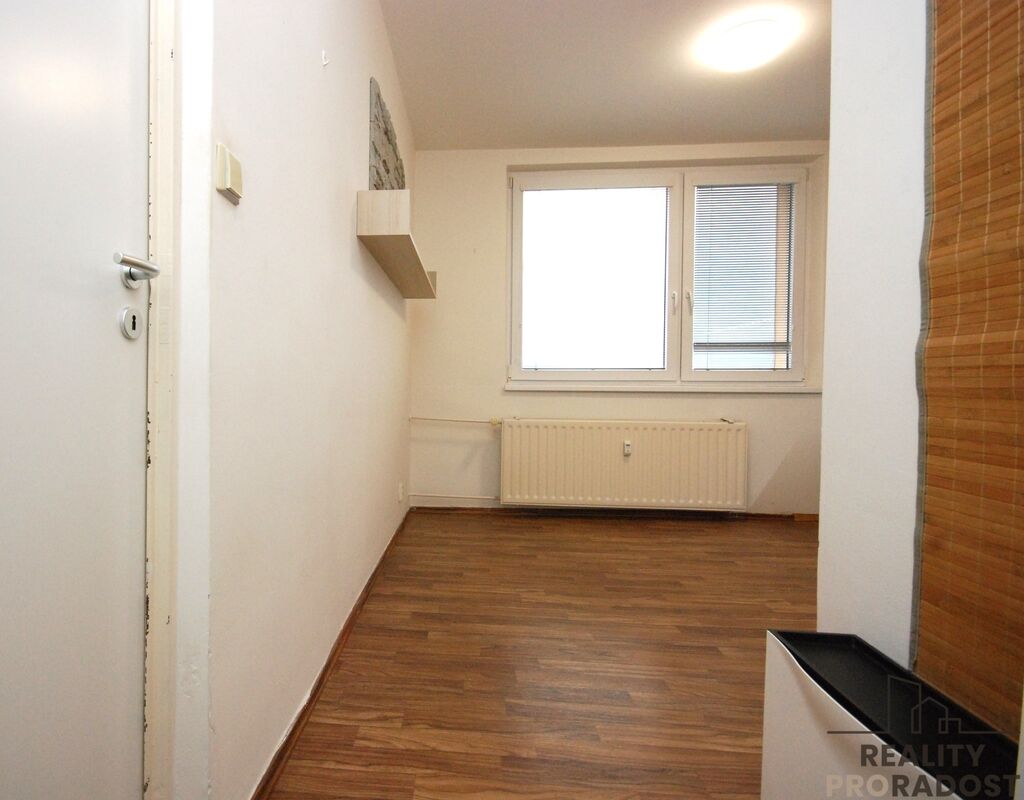 Dispozice bytu: vstupní chodba, koupelna se sprchovým koutem, umyvadlem, WC a místem na pračku, kuchyně, ložnice se vstupem na balkon. Byt je částečně vybavený – v ložnici se nachází šatní skříň a pohovka, v kuchyni kuchyňská linka s troubou a sklokeramickou varnou deskou (bez lednice).