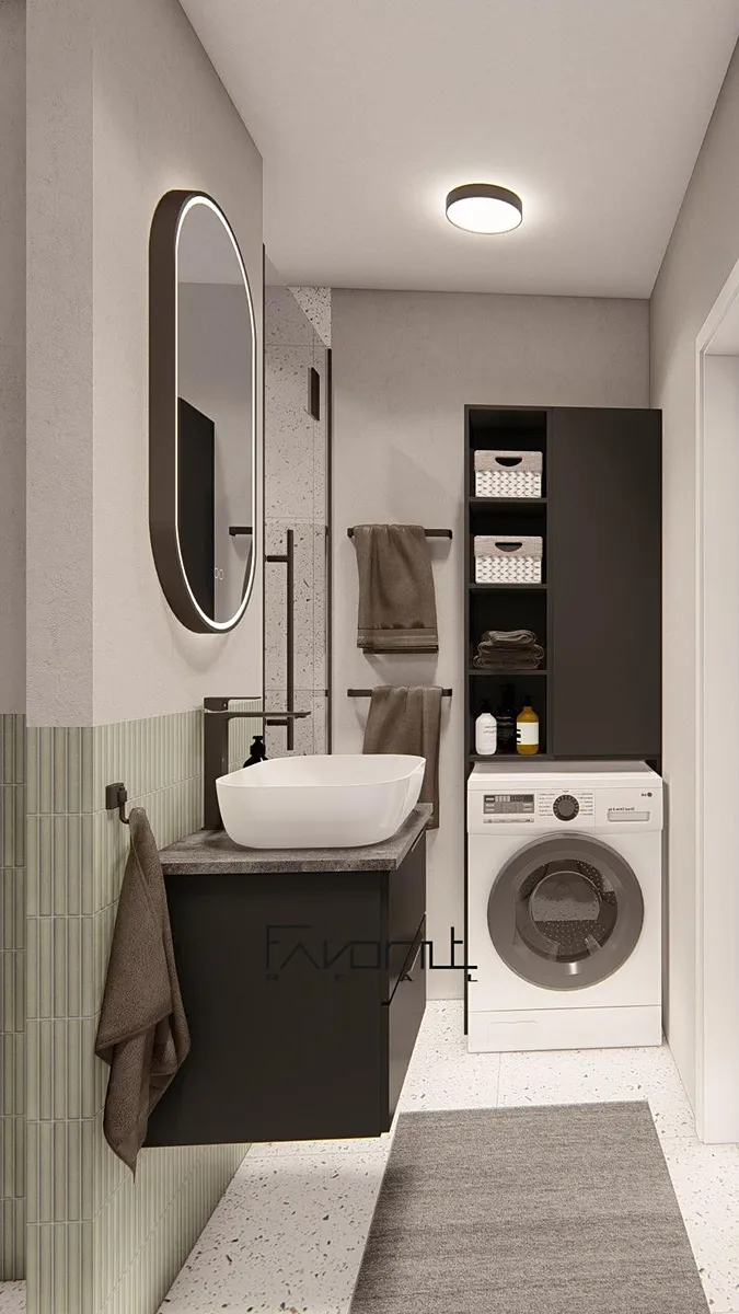 Součástí prodeje je také nová kuchyňská linka se spotřebiči, koupelnová baterie, sanita a moderní koupelnová skříňka.