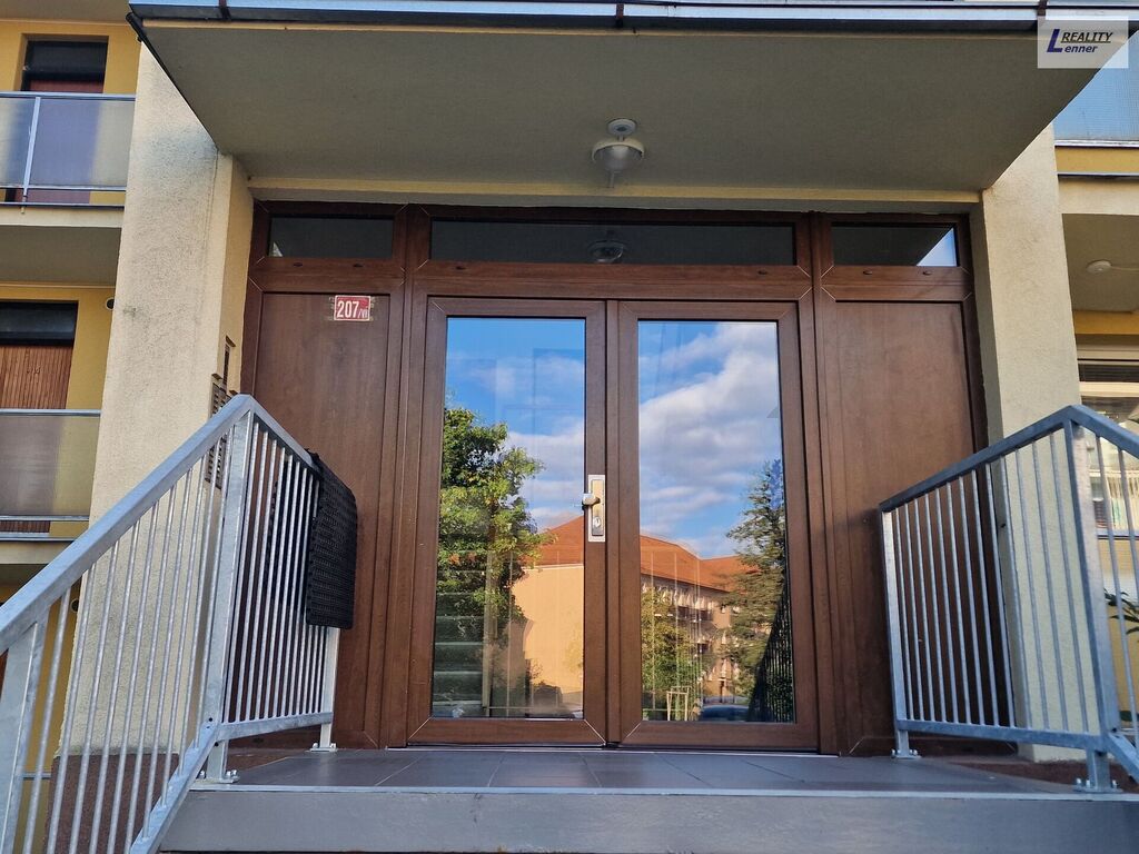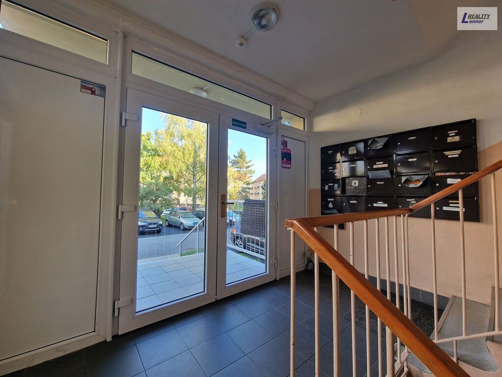 Bytová jednotka je umístěna ve 3. patře třípatrového cihlového pavlačového domu bez výtahu, který prošel částečnou rekonstrukcí (nová fasáda se zateplením, vstupní portály, střecha a stoupací vedení).