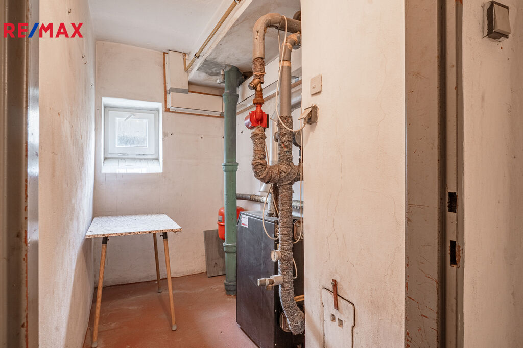 Vytápění je řešeno etážově pomocí plynového kotle, ohřev vody zajišťuje elektrický bojler.