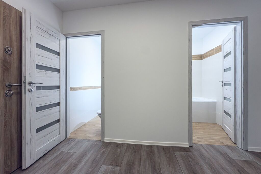 Byt dostal novou kuchyňskou linku na míru, nové podlahy, dveře, kompletní rozvody elektřiny, elegantní koupelnu i samostatnou toaletu s místem pro pračku či sušičku. Každý detail byl promyšlen tak, aby se tu bydlelo pohodlně a bez kompromisů.
