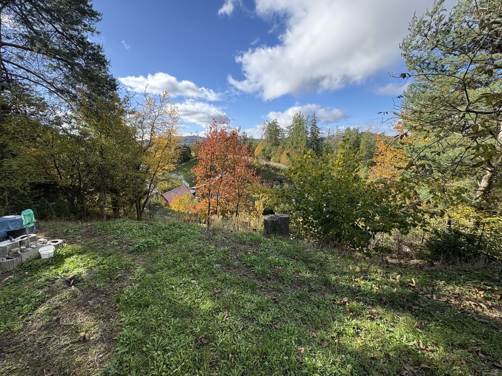Terén je svažitější, což představuje zajímavou výzvu pro budoucího majitele – nabízí ale možnost vytvořit originální projekt chaty zapuštěné do terénu s terasou a maximálním využitím výhledu.