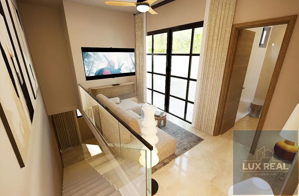 Luxusní rezidenční třípatrové domy s mezonetem s bazénem a whirpoolem jsou situovány na ideálním místě blízko restaurací a obchodů s docházkovou vzdáleností k jedné z nejkrásnějších panenských pláží Dominikánské republiky - Playa El Valle.