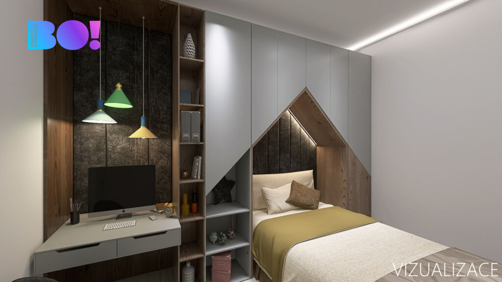 - V horním patře můžete vytvořit klidovou zónu s ložnicemi, pracovnou a velkou koupelnou.