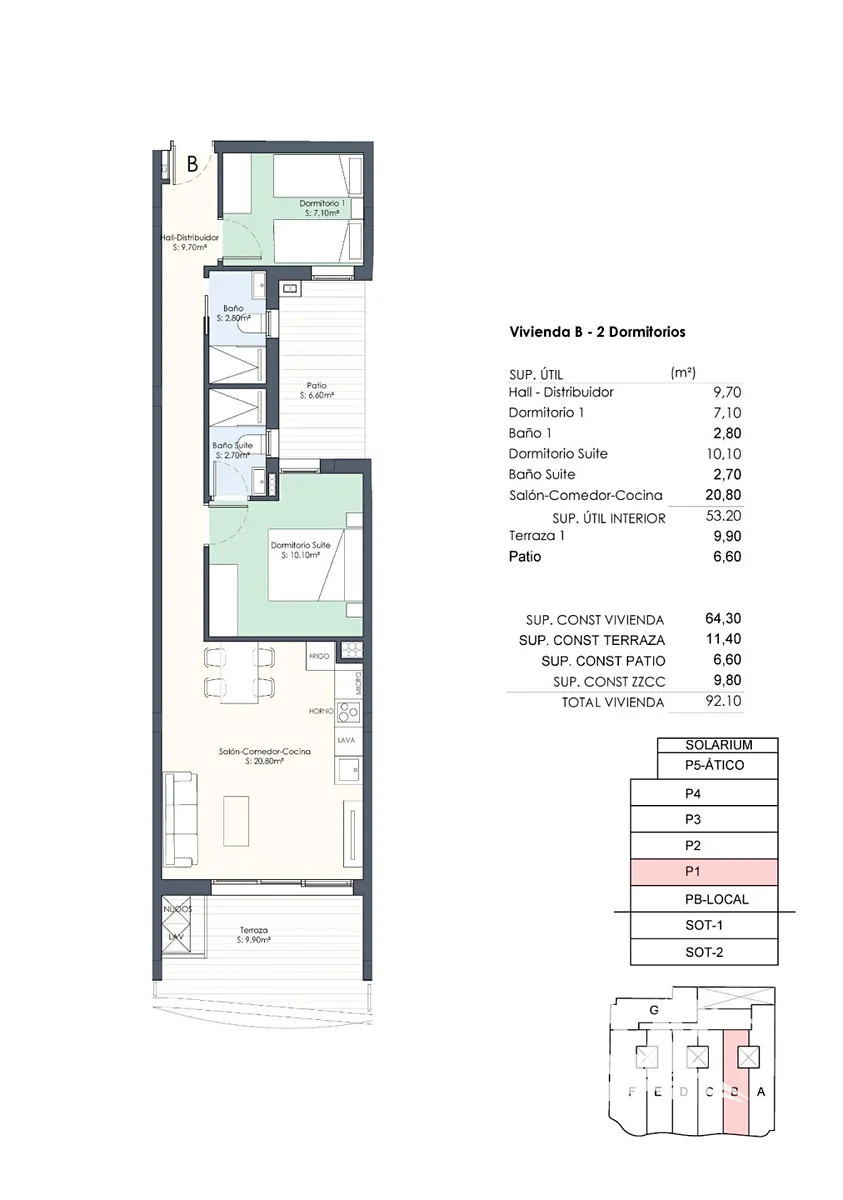 Tento elegantní a moderní apartmán 3+kk nabízí vše, co potřebujete pro pohodlný život u moře. Nachází se pouhých 100 metrů od písečných pláží Torrevieja a kombinuje praktický design s komfortem, který ocení každý, kdo touží po domově i investici v jednom. Celková plocha bytu činí 64 m² a zahrnuje dvě koupelny, prostorný obývací pokoj s kuchyňským koutem a terasu o velikosti 10 m², kde si každý den můžete užívat výhled na moře.