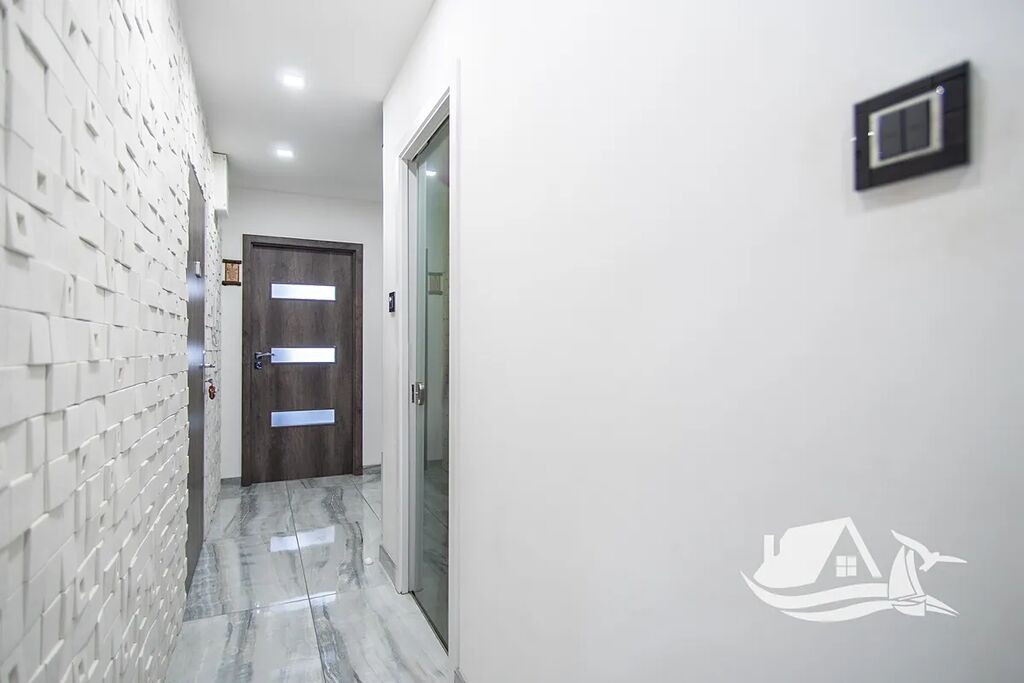 Během kompletní rekonstrukce prošly bytem nové elektroinstalace, vodovodní rozvody a snížené stropy s diskrétním LED osvětlením ve všech místnostech, díky čemuž prostor působí vzdušně a moderně až na míle daleko.
