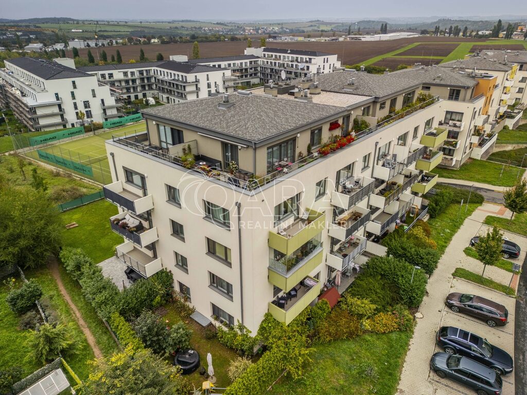 Nabízím ke koupi moderní byt o dispozici 3+kk a výměře užitné plochy 83,2 m², který se nachází v oblíbené lokalitě Horoměřice, v rezidenčním projektu z roku 2018. K bytu náleží prostorná terasa o velikosti 49,8 m², garážové stání a sklep (3,2 m²). Byt je situován v 5. nadzemním podlaží s výtahem a nabízí praktické uspořádání...prostorný obývací pokoj s kuchyňským koutem, ložnici, dětský pokoj, koupelnu s vanou a sprchovou zástěnou, samostatné WC a vstupní chodbu.