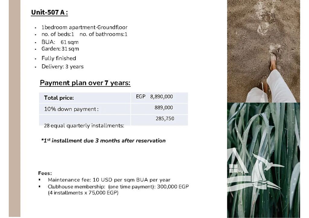 Nabízíme k prodeji elegantní přízemní apartmán o dispozici 2+kk (1 ložnice) v exkluzivní rezidenční komunitě Blanca Gardens, jen pár minut chůze od písečné pláže Soma Bay a v těsné blízkosti soukromé klubovny.