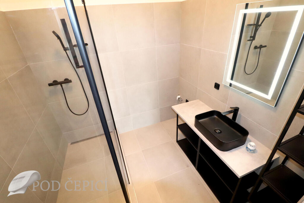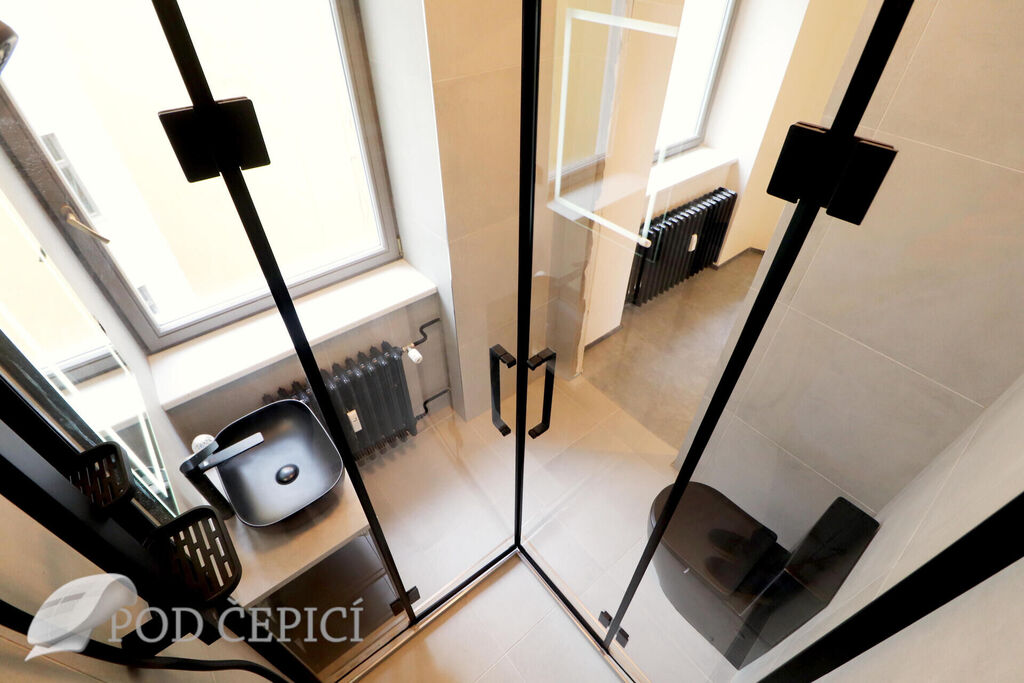 Byt se nachází ve 3. patře cihlového domu. Jednotka je v dispozici 4+kk a s plochou 110m2 se 2 balkóny nabízí štědrý prostor k žití. Pokoje jsou neprůchozí, jak ukazuje přiložený půdorys. Při rekonstrukci majitel vybudoval samostatné WC a především 2 koupelny (v jedné najdeme další WC), vybavené elegantní černou sanitou, které zajistí pohodlné bydlení i náročnějším nájemníkům.