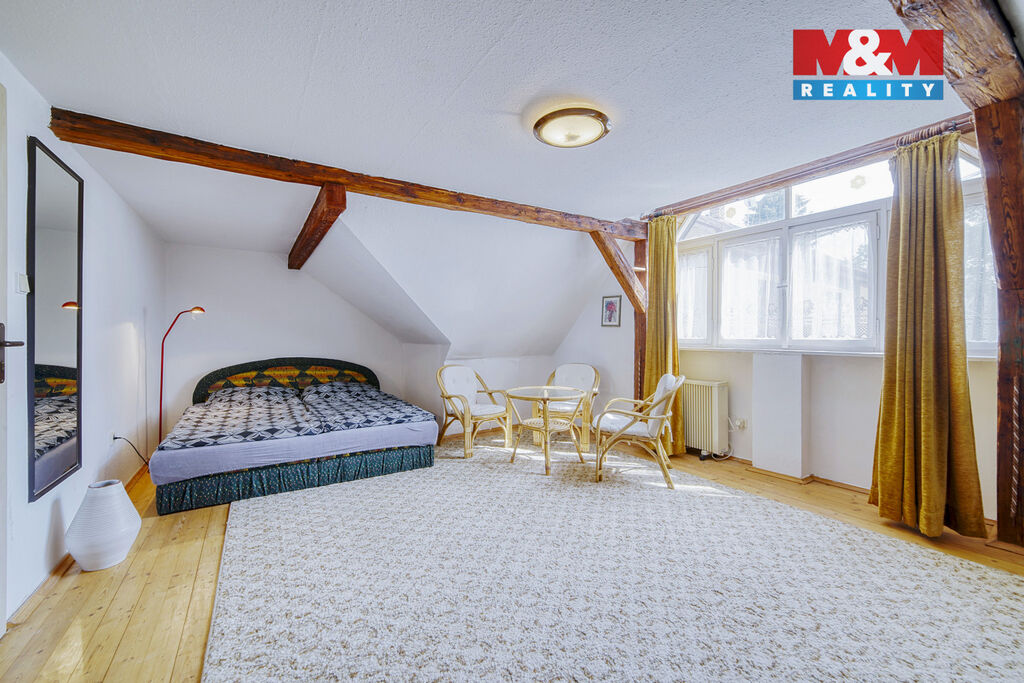 Nabízím k prodeji prostorný rodinný dům s penzionem v klidné části obce Žihle, okres Plzeň-sever. Tato nemovitost 524 m² a celkové ploše pozemku 1968 m² představuje skvělou investiční příležitost. V prvním nadzemním podlaží je byt 3+1, útulná pivnice s kuchyňkou a WC, venkovní kuchyň a vodárna. Druhé podlaží nabízí sedm pokojů, tři koupelny s WC a kuchyňku. Na pozemku se dále nachází garáž pro dvě auta, dílna, sklad a bazén. Dům je napojen na veřejný vodovod, má vlastní studnu a odpady jsou svedeny do veřejné kanalizace. Vytápění je zajištěno plynovým kotlem, krbem a el. přímotopy. Ideální pro bydlení i podnikání. Pro více informací kontaktujte makléře.