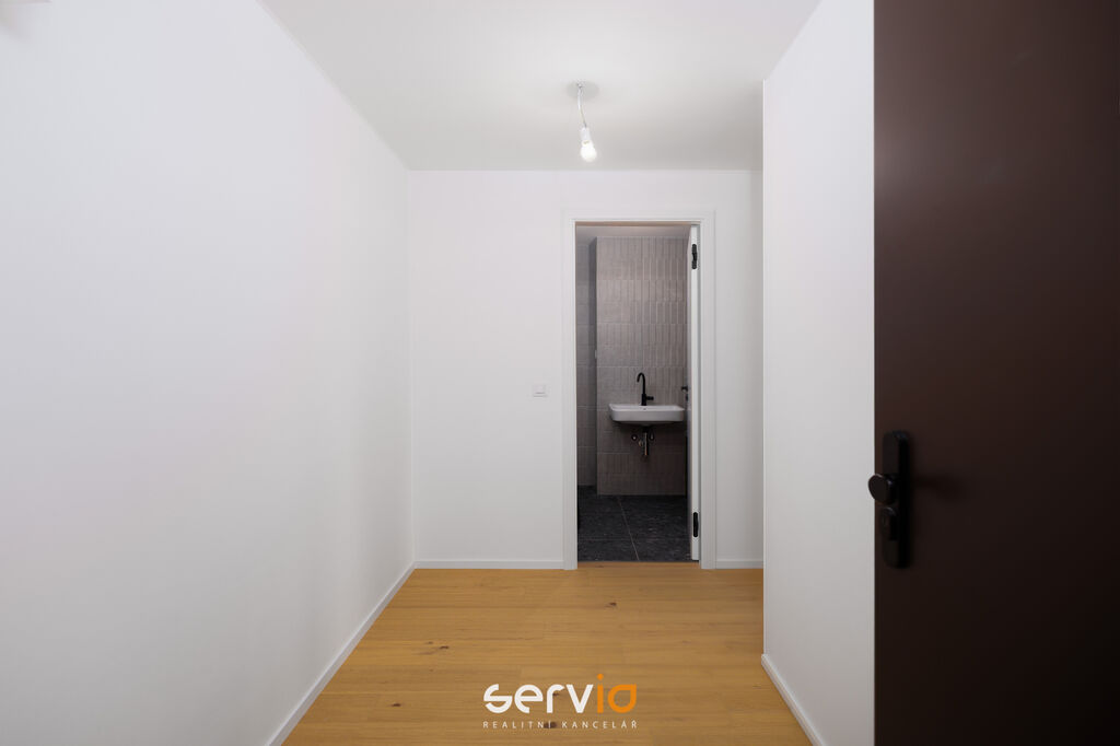 V předsíni (6,1 m²) se nachází vestavěná skříň poskytující dostatek úložného prostoru.