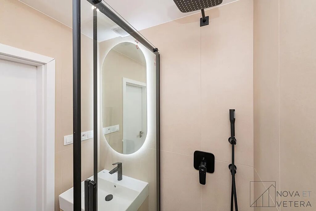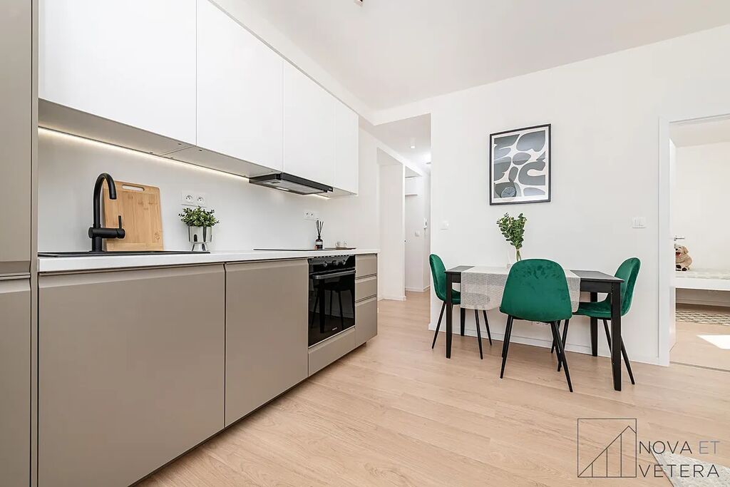 Byt právě prochází kompletní a kvalitní rekonstrukcí, která zahrnuje nové rozvody elektřiny, vody a odpadů, nové podlahy, moderní obklady a dlažbu značky Marazzi, koupelnu se sprchovým koutem se sanitou Grohe a také novou kuchyňskou linku se spotřebiči Gorenje s prodlouženou pětiletou zárukou. Dispozičně nabízí prostorný obývací pokoj s kuchyňským koutem, dva samostatné pokoje vhodné jako ložnice, dětský pokoj či pracovna, koupelnu se sprchovým koutem, samostatnou toaletu, prostornou vstupní chodbu a technickou místnost s místem pro vestavné skříně nebo jiné úložné řešení.