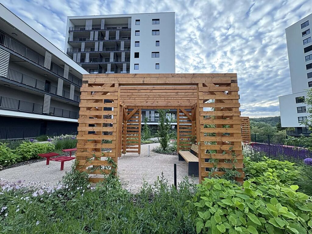 Novostavba se dvěma výtahy disponuje upraveným vnitroblokem s posezením a herními prvky. Byt je připraven k nastěhování, prodává se bez kuchyně a dalšího vybavení, což umožňuje novému majiteli zařídit si interiér dle vlastních představ. V domě je kolárna a kočárkárna.