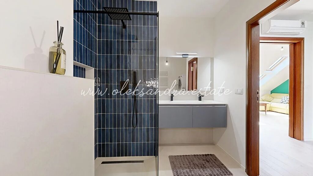 Byt právě prošel precizní a do detailu promyšlenou rekonstrukcí (2024) s důrazem na kvalitu, styl a funkčnost. Výsledkem je moderní, světlý interiér s italským šarmem na míru vyrobená kuchyně z Itálie, obklady a dlažby Fondo Valle (120x120 cm), dubová podlaha I. třídy od Labor Legno. Každý pokoj je vybaven klimatizací, bezpečnostním alarmem, novými okny, rozvody i kondenzačním plynovým kotlem Bosch. Samozřejmostí jsou dvě elegantní koupelny se sprchovým koutem, WC a bidetem.