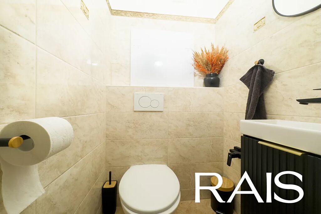 Ze vstupní haly, která slouží zároveň jako šatna, je přístupna luxusní koupelna s rohovou vanou. Toaleta s umyvadlem je řešena také jako samostatná místnost. Následuje poté prostorná kuchyně s jídelním koutem a na míru navrženou kuchyňskou linkou se zabudovanými spotřebiči, která zajistí budoucímu majiteli dostatek prostoru k vaření či uložení nádobí. Z kuchyně je přístupný prostorný balkon. Ze vstupní haly se dostanete do ložnice s vestavěnými skříněmi. Na obývací pokoj navazuje prosvětlená pracovna, kterou lze využít i jako dětský pokoj. Bytová jednotka působí velice pozitivním světlým dojmem, přičemž z oken jsou krásné výhledy do okolí.