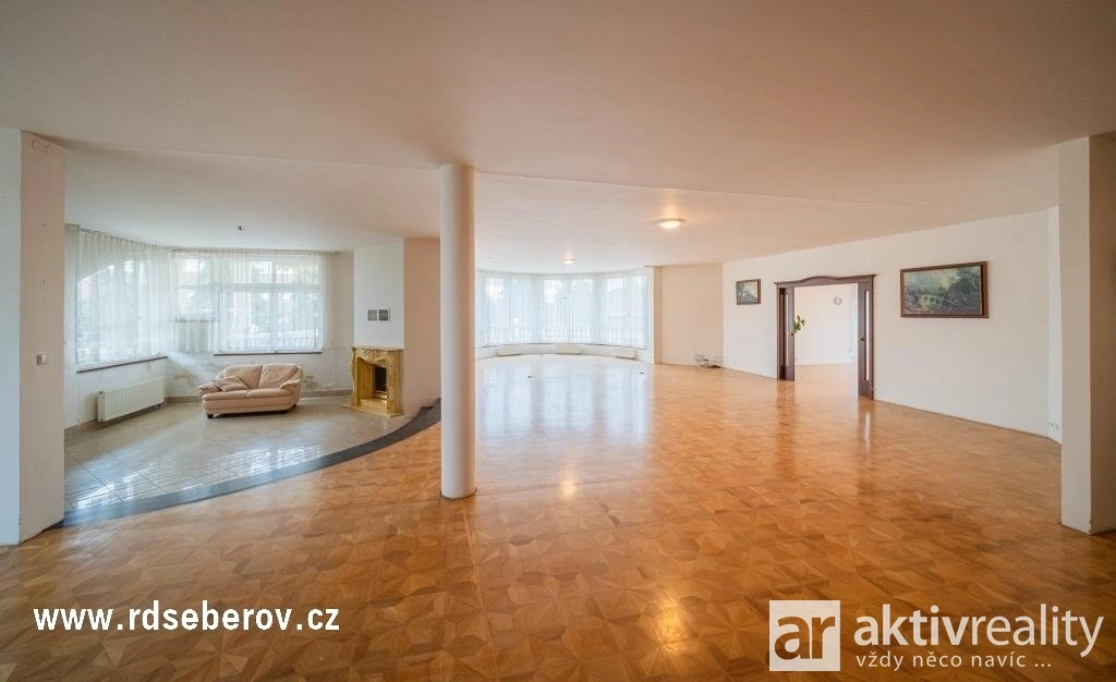 Suterén (343 m²): Využijte jej jako firemní wellness, privátní fitness, rehabilitační centrum nebo relaxační zónu. Zahrnuje velký bazén (10 x 4 m) s protiproudem, vířivku pro 6 osob, sprchový kout a technické zázemí (kotelna, vzduchotechnika).