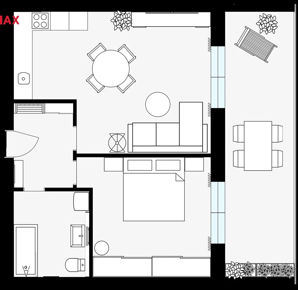 Velkorysé terasy a balkony: Užívejte si ranní kávu nebo večerní relaxaci s výhledem do zeleně.