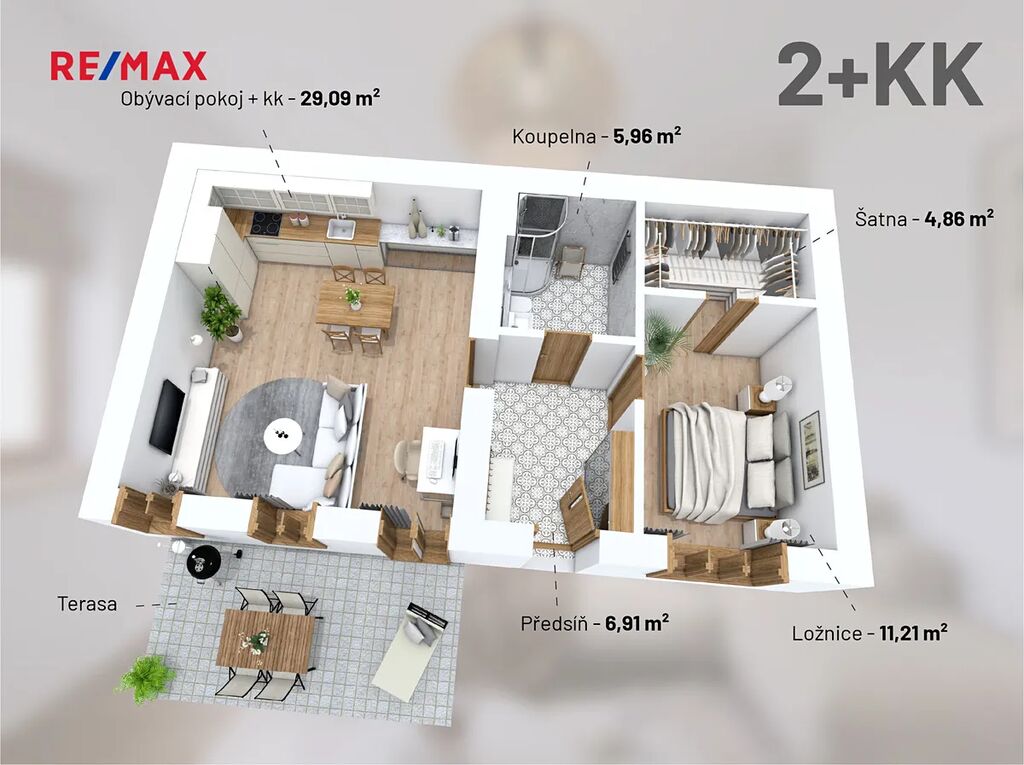 Nabízený byt disponuje vlastní terasou směrem do dvora objektu, parkovacím místem a společným odpočinkovým prostorem ve dvoře domu.
