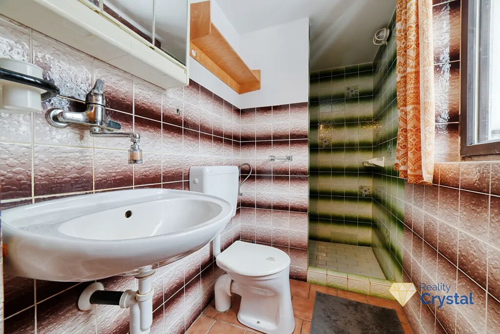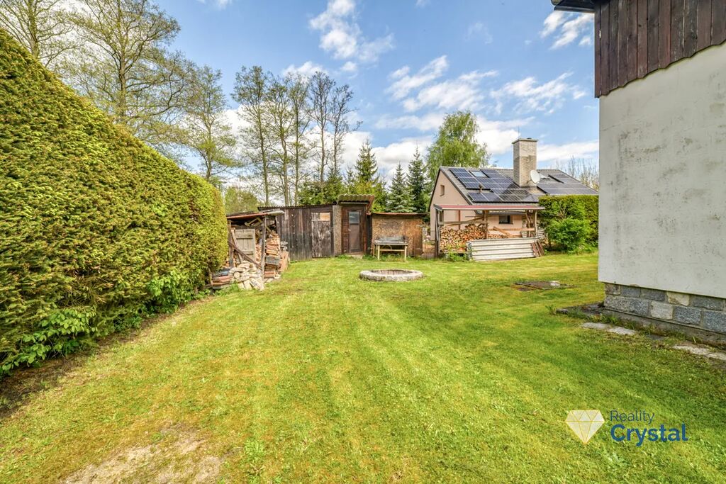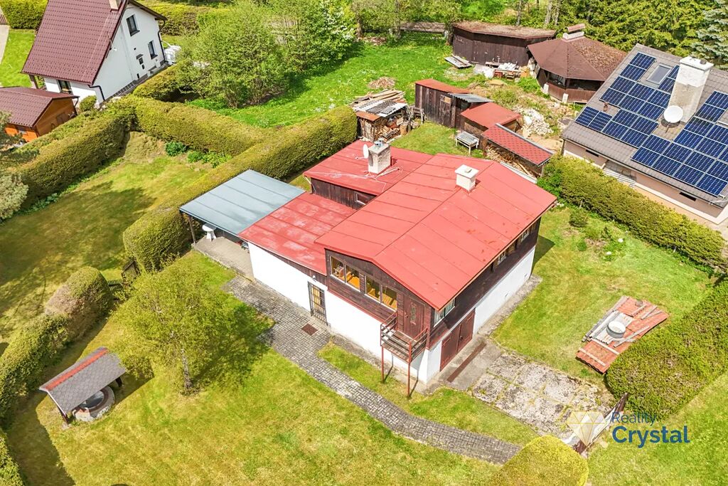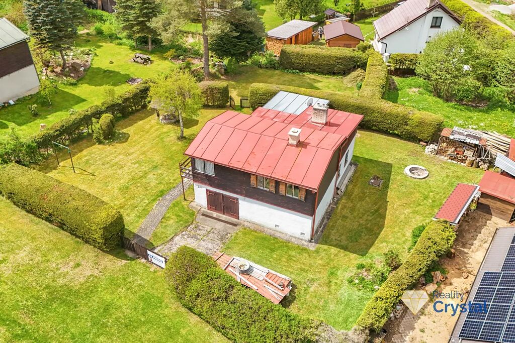 Pak vás zaujme nabídka rovinatého pozemku o rozloze 688 m², na kterém se nachází dvoupodlažní rekreační chata se zastřešenou terasou o rozloze 18 m2 a verandou ve druhém patře o rozloze 7,6 m2 vedená pod číslem evidenčním. Je napojena na elektřinu, voda je ze studny a kanalizaci je do jímky. Na pozemku se též nachází vlastní kopaná studna. Topení je aktuálně řešeno kamny a krbem ve druhém patře.