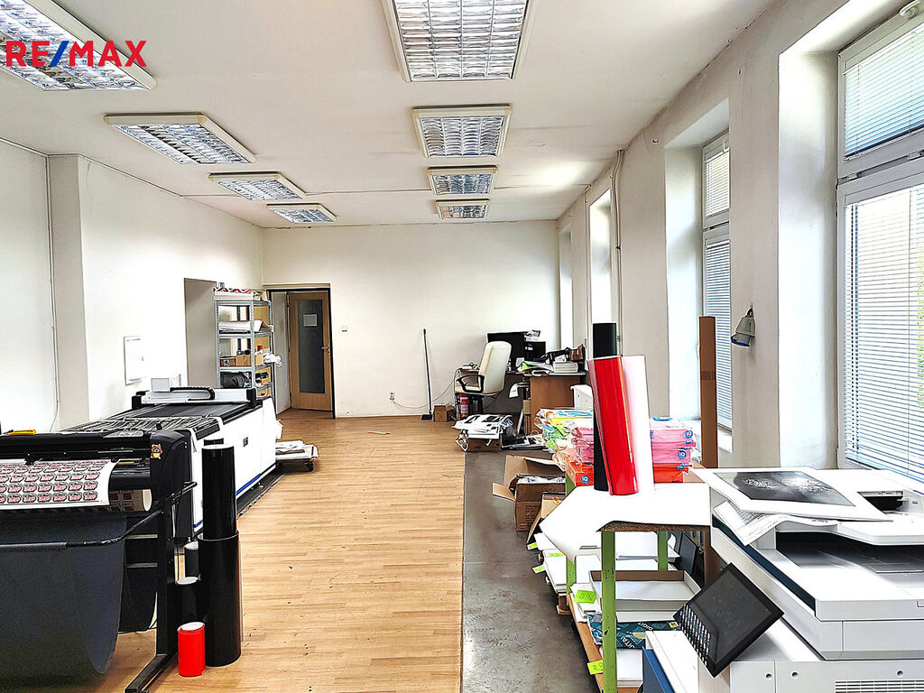 V 1. NP se nachází prostory pro ofsetovou tiskárnu s knihárnou (4 velké místnosti) sociální zázemí zahrnuje dvě samostatná WC, sprchu a další technické zázemí.